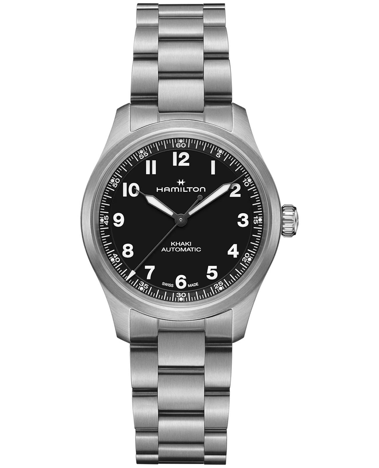 Мужские швейцарские часы Hamilton Khaki Field Titanium Auto 36mm Limited Edition Engineered Garments H70235130 представляют эксклюзивную коллаборацию с японским брендом Engineered Garments, выпущенную лимитированной серией в 1999 экземпляров в честь даты основания бренда-партнёра. Модель выполнена в облегчённом титановом корпусе диаметром 36 мм и толщиной 10.8 мм с матовой отделкой, сочетающейся с титановым браслетом и раскладывающейся застёжкой (16 мм). Чёрный циферблат с треугольными часовыми метками и люминесцентным покрытиемЛюминесцентное покрытиеПозволяет считывать показания времени в темноте. Производители наносят на стрелки, часовые индексы, безель или поверхность циферблата светонакопительный состав, дающий холодное свечение. Super-LumiNova обеспечивает превосходную видимость в темноте, дополнен сапфировым стекломСапфировое стеклоПрочный и надёжный материал из кристалла сапфира синтетического происхождения, характеризующийся особой твёрдостью и устойчивостью к царапинам и повреждениям. с антибликовым покрытием для повышенной прочности и чёткости показаний. Автоматический механизм Hamilton H-10 с инновационной пружиной баланса Nivachron™Nivachron™Специально разработанный инновационный сплав Nivachron™ повышает устойчивость часов к воздействию магнитных полей. гарантирует точность хода, устойчивость к магнитным полям и впечатляющий запас хода 80 часов. Часы оснащены прозрачной задней крышкой, демонстрирующей работу калибра, и обладают водонепроницаемостью до 10 бар (100 метров), что делает их надёжным спутником в экстремальных условиях.
