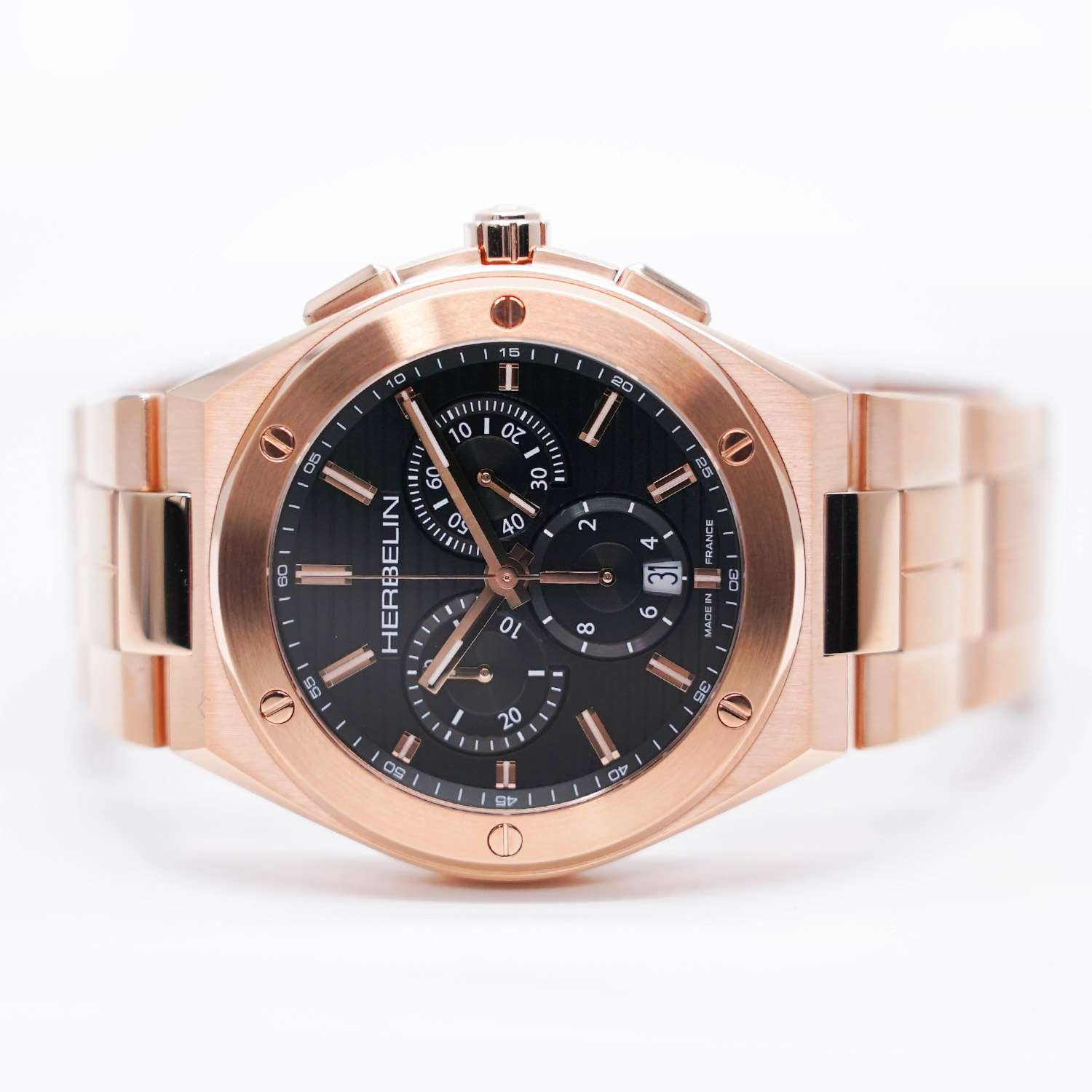 Мужские кварцевые наручные часы-хронографХронографФункция позволяет измерять отрезки времени с особой точностью: часы, минуты, секунды. Верным признаком хронографа является наличие на циферблате 3 дополнительных окошек-счётчиков. Herbelin Cap Camarat 37645BPR14 – отражающий идеальное сочетание современного дизайна, надёжности и функциональности. Элегантный облик станет превосходным завершением образа, наделив его индивидуальным характером. Корпус из нержавеющей стали с PVD-покрытиемPVDУльтратонкое покрытие наносится в технике вакуумного напыления, сочетает в себе нитрид титана особой прочности со слоем золота или оксида хрома. Несёт в себе декоративную или защитную функцию. цвета розового золота, диаметром 42 мм, идеально сбалансирован и элегантен. Сапфировое стеклоСапфировое стеклоПрочный и надёжный материал из кристалла сапфира синтетического происхождения, характеризующийся особой твёрдостью и устойчивостью к царапинам и повреждениям. защищает циферблат от царапин и устойчивое к механическим повреждениям. БезельБезельВнешний ободок, закрепляющий стекло. В спортивных часах так называется поворотное кольцо с делениями на циферблате, выполняет роль таймера – замеряет отрезки времени на шкале. Неподвижный безель – элемент декора. Однонаправленно вращающийся безель на дайверских часах позволяет фиксировать моменты погружения и выныривания на поверхность. украшен винтами, заводная головка с защитой. Окошко даты находится в положении 6 часов. Стрелки и метки с люминесцентным покрытиемЛюминесцентное покрытиеПозволяет считывать показания времени в темноте. Производители наносят на стрелки, часовые индексы, безель или поверхность циферблата светонакопительный состав, дающий холодное свечение.. Стальной браслет с PVD-покрытиемPVDУльтратонкое покрытие наносится в технике вакуумного напыления, сочетает в себе нитрид титана особой прочности со слоем золота или оксида хрома. Несёт в себе декоративную или защитную функцию. на застёжке-бабочке с кнопкамиЗастёжка "бабочка"Такой вид застёжки дополняется предохранителями, помогающими избежать случайного раскрытия браслета. Обладают изящным исполнением. обеспечивает комфортное ношение. Водозащита 100 метров позволит плавать, нырять и заниматься другими водными видами спорта. Эта модель – отличный выбор для тех, кто ищет сочетание стиля, качества и функциональности. Часы станут не только полезным аксессуаром, но и выразительным элементом вашего имиджа.