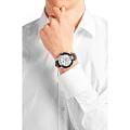 Мужские часы Hugo Boss Ikon HB1513175 представлены в строгом круглом корпусе из нержавеющей стали диаметром 44 мм, защищенным прочным минеральным стекломМинеральное стеклоМинеральное стекло представляет собой искусственно выращенный минерал кварца. Такое стекло отличается особой устойчивостью к повреждениям и царапинам. Уступает по некоторым качествам сапфировому стеклу.. Модель оснащена точным кварцевым механизмом c калибром Seiko с функцией хронографаХронографФункция позволяет измерять отрезки времени с особой точностью: часы, минуты, секунды. Верным признаком хронографа является наличие на циферблате 3 дополнительных окошек-счётчиков. и 24-часовым индикатором. Белый эффектный циферблат с контрастными серебристыми метками и стрелками с люминесцентным покрытиемЛюминесцентное покрытиеПозволяет считывать показания времени в темноте. Производители наносят на стрелки, часовые индексы, безель или поверхность циферблата светонакопительный состав, дающий холодное свечение., обеспечивающий отличную видимость в темноте. Эти изысканные часы также оснащены тахиметромТахиметрРазмеченная шкала, располагается на ободке или безеле часов. Тахиметр позволяет рассчитать скорость на определённом участке пути, расстояние измеряется в километрах или милях.. Кожаный ремень со стандартной застежкой обеспечивает комфортную посадку, а водонепроницаемость 100 метров делает модель надежной для повседневной носки.