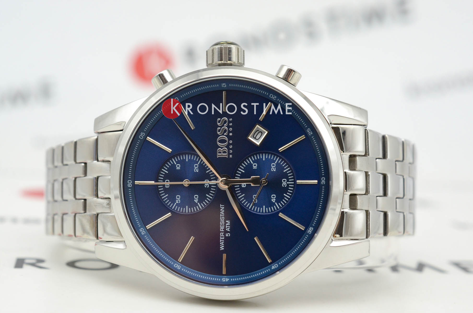 Мужские элегантные часы Hugo Boss Jet HB1513384 сочетают современный дизайн и функциональность в 41-мм корпусе из нержавеющей стали серебристого цвета. Модель оснащена кварцевым механизмом, обеспечивающим точность хода, и функциями хронографаХронографФункция позволяет измерять отрезки времени с особой точностью: часы, минуты, секунды. Верным признаком хронографа является наличие на циферблате 3 дополнительных окошек-счётчиков. с cекундомеромСекундомерСекундоме́р — прибор, способный измерять интервалы времени с точностью до долей секунды., а также c индикацией даты в положении 4 часа. Синий стильный циферблат защищен устойчивым к царапинам минеральным стекломМинеральное стеклоМинеральное стекло представляет собой искусственно выращенный минерал кварца. Такое стекло отличается особой устойчивостью к повреждениям и царапинам. Уступает по некоторым качествам сапфировому стеклу., а стальной браслет на раскладной застежкеРаскладная застёжкаТакой тип застёжки используется только на браслетах из металла. Она никогда не раскрывается полностью, происходит разделение на 2 и более частей. Раскладывающая застёжка снизит вероятность потери часов к минимуму. гарантирует комфорт и безопасность при носке. Часы обладают водонепроницаемостью WR50 (5 атм), что защищает часы от брызг или дождя. Эта модель станет идеальным аксессуаром для ежедневного использования и особых мероприятий, подчеркивая вашу индивидуальность и стиль.