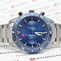 Мужские часы Hugo Boss HB1513863 коллекции Santiago представлены в круглом 44-мм корпусе из нержавеющей стали 316L с  IP-покрытиемIP-покрытиеМетод ионного напыления. Демонстрирует повышенную устойчивость к истиранию, окислению и химическим веществам. Под воздействием высокого давления и температуры около 1500°C молекулы металла надёжно соединяются с частицами корпуса часов.. Оснащены кварцевым механизмом с функциями хронографаХронографФункция позволяет измерять отрезки времени с особой точностью: часы, минуты, секунды. Верным признаком хронографа является наличие на циферблате 3 дополнительных окошек-счётчиков., секундомеромСекундомерСекундоме́р — прибор, способный измерять интервалы времени с точностью до долей секунды. и тахиметрической шкалойТахиметрРазмеченная шкала, располагается на ободке или безеле часов. Тахиметр позволяет рассчитать скорость на определённом участке пути, расстояние измеряется в километрах или милях., а также индикацией даты. Синий циферблат с метками в виде штрихов защищен устойчивым к царапинам минеральным стекломМинеральное стеклоМинеральное стекло представляет собой искусственно выращенный минерал кварца. Такое стекло отличается особой устойчивостью к повреждениям и царапинам. Уступает по некоторым качествам сапфировому стеклу.. Стальной браслет с IP-покрытиемIP-покрытиеМетод ионного напыления. Демонстрирует повышенную устойчивость к истиранию, окислению и химическим веществам. Под воздействием высокого давления и температуры около 1500°C молекулы металла надёжно соединяются с частицами корпуса часов. дополнен раскладной застёжкойРаскладная застёжкаТакой тип застёжки используется только на браслетах из металла. Она никогда не раскрывается полностью, происходит разделение на 2 и более частей. Раскладывающая застёжка снизит вероятность потери часов к минимуму.. Водонепроницаемость 50 метров (5 ATM) обеспечивает защиту от брызг и дождя.