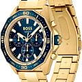 Мужские часы Hugo Boss Energy HB1513973 представлены в круглом 44-мм корпусе из нержавеющей стали с IP-покрытиемIP-покрытиеМетод ионного напыления. Демонстрирует повышенную устойчивость к истиранию, окислению и химическим веществам. Под воздействием высокого давления и температуры около 1500°C молекулы металла надёжно соединяются с частицами корпуса часов.. Оснащены кварцевым механизмом с функциями хронографаХронографФункция позволяет измерять отрезки времени с особой точностью: часы, минуты, секунды. Верным признаком хронографа является наличие на циферблате 3 дополнительных окошек-счётчиков., секундомеромСекундомерСекундоме́р — прибор, способный измерять интервалы времени с точностью до долей секунды. и тахиметромТахиметрРазмеченная шкала, располагается на ободке или безеле часов. Тахиметр позволяет рассчитать скорость на определённом участке пути, расстояние измеряется в километрах или милях. на безелеБезельВнешний ободок, закрепляющий стекло. В спортивных часах так называется поворотное кольцо с делениями на циферблате, выполняет роль таймера – замеряет отрезки времени на шкале. Неподвижный безель – элемент декора. Однонаправленно вращающийся безель на дайверских часах позволяет фиксировать моменты погружения и выныривания на поверхность.. Синий циферблат защищен устойчивым к царапинам минеральным стекломМинеральное стеклоМинеральное стекло представляет собой искусственно выращенный минерал кварца. Такое стекло отличается особой устойчивостью к повреждениям и царапинам. Уступает по некоторым качествам сапфировому стеклу.. Браслет из нержавеющей стали с IP-покрытиемIP-покрытиеМетод ионного напыления. Демонстрирует повышенную устойчивость к истиранию, окислению и химическим веществам. Под воздействием высокого давления и температуры около 1500°C молекулы металла надёжно соединяются с частицами корпуса часов. дополнен раскладной застёжкойРаскладная застёжкаТакой тип застёжки используется только на браслетах из металла. Она никогда не раскрывается полностью, происходит разделение на 2 и более частей. Раскладывающая застёжка снизит вероятность потери часов к минимуму., а стрелки покрыты люминесцентным составомЛюминесцентное покрытиеПозволяет считывать показания времени в темноте. Производители наносят на стрелки, часовые индексы, безель или поверхность циферблата светонакопительный состав, дающий холодное свечение. для видимости в темноте. Водонепроницаемость 50 метров (5 ATM) позволяет использовать часы для плавания.