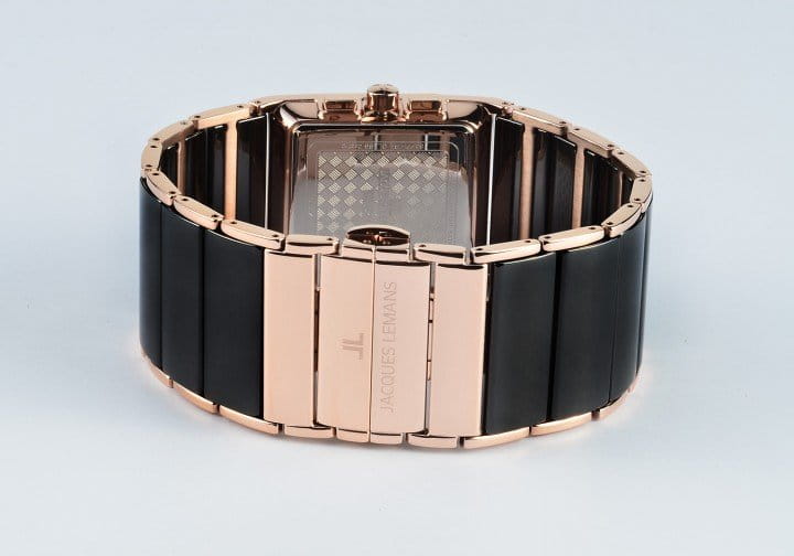 Мужские австрийские часы с хронографХронографФункция позволяет измерять отрезки времени с особой точностью: часы, минуты, секунды. Верным признаком хронографа является наличие на циферблате 3 дополнительных окошек-счётчиков. Jacques Lemans Dublin 1-1941B, кварцевый механизм с высокой точностью. Класс водозащиты: 50 метров, позволит защитить корпус от случайных брызг или капель дождя. Корпус часов изготовлен из стали с PVDPVDУльтратонкое покрытие наносится в технике вакуумного напыления, сочетает в себе нитрид титана особой прочности со слоем золота или оксида хрома. Несёт в себе декоративную или защитную функцию. покрытием цвета розовое золото. Браслет модели из высокотехнологичной керамикиВысокотехнологичная керамикаИнновационный запатентованный Rado материал с гладкой или матовой поверхностью. Керамика за счёт кристаллической структуры обладает повышенной устойчивостью от возникновения царапин. Материал способен принимать температуру тела человека, обеспечивая невероятный комфорт при ношении. черного цвета дополнен надежной .