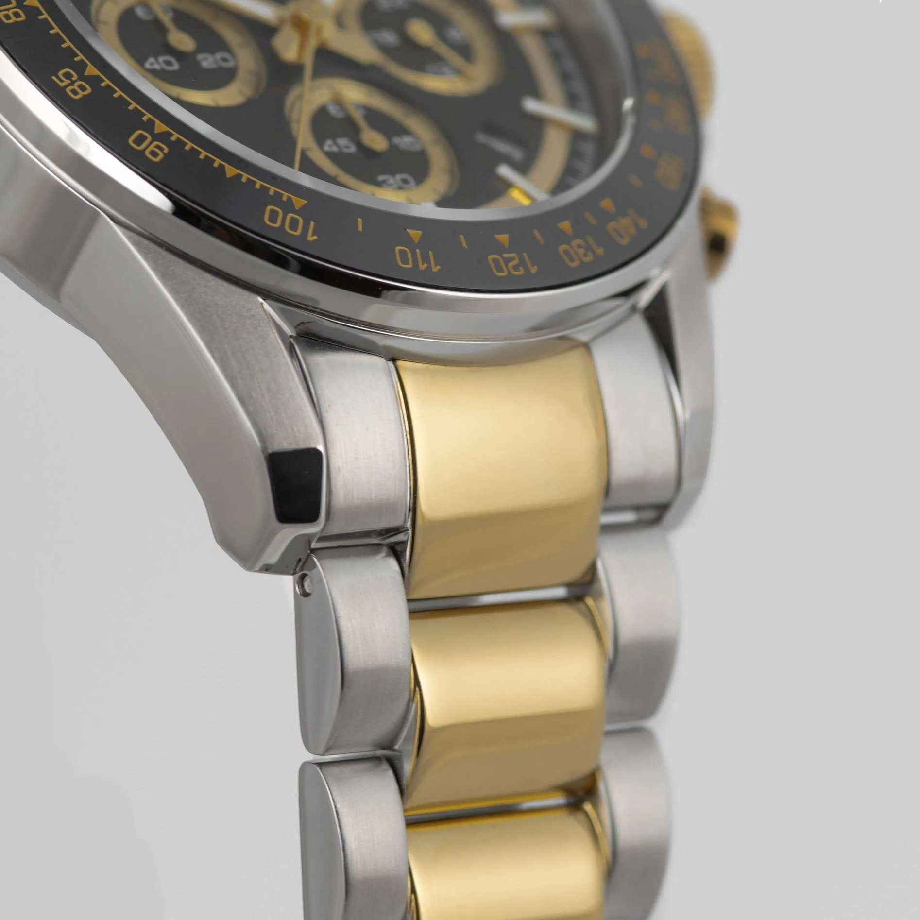 Мужские кварцевые часы-хронографХронографФункция позволяет измерять отрезки времени с особой точностью: часы, минуты, секунды. Верным признаком хронографа является наличие на циферблате 3 дополнительных окошек-счётчиков. с секундомеромСекундомерСекундоме́р — прибор, способный измерять интервалы времени с точностью до долей секунды. Jacques Lemans 1-2207D – лаконичная красота и изысканная элегантность. Оригинальная модель с классическим оформлением станет превосходным завершением образа, наделив его индивидуальным характером. Корпус выполнен из нержавеющей стали серебристого цвета, диаметром 43 мм, что обеспечивает долговечность и утончённый внешний вид. Минеральное стеклоМинеральное стеклоМинеральное стекло представляет собой искусственно выращенный минерал кварца. Такое стекло отличается особой устойчивостью к повреждениям и царапинам. Уступает по некоторым качествам сапфировому стеклу. повышенной прочности Crystex защищает циферблат от царапин. Неподвижный безельБезельВнешний ободок, закрепляющий стекло. В спортивных часах так называется поворотное кольцо с делениями на циферблате, выполняет роль таймера – замеряет отрезки времени на шкале. Неподвижный безель – элемент декора. Однонаправленно вращающийся безель на дайверских часах позволяет фиксировать моменты погружения и выныривания на поверхность. с PVD-покрытиемPVDУльтратонкое покрытие наносится в технике вакуумного напыления, сочетает в себе нитрид титана особой прочности со слоем золота или оксида хрома. Несёт в себе декоративную или защитную функцию. и тахиметромТахиметрРазмеченная шкала, располагается на ободке или безеле часов. Тахиметр позволяет рассчитать скорость на определённом участке пути, расстояние измеряется в километрах или милях.. Стальной браслет с частичным PVD-покрытиемPVDУльтратонкое покрытие наносится в технике вакуумного напыления, сочетает в себе нитрид титана особой прочности со слоем золота или оксида хрома. Несёт в себе декоративную или защитную функцию. на раскладной застёжке с фиксаторомРаскладная застёжкаТакой тип застёжки используется только на браслетах из металла. Она никогда не раскрывается полностью, происходит разделение на 2 и более частей. Раскладывающая застёжка снизит вероятность потери часов к минимуму. обеспечивает комфортное ношение Водозащита 200 метров позволит плавать, нырять и заниматься другими водными видами спорта. Стрелки и метки с люминесцентным покрытиемЛюминесцентное покрытиеПозволяет считывать показания времени в темноте. Производители наносят на стрелки, часовые индексы, безель или поверхность циферблата светонакопительный состав, дающий холодное свечение. позволяющие легко определять время даже в темноте. 12-ти и 24-х часовой формат времени. Окошко даты находится в положении между 4 и 5 часами. Рифленая заводная головка с защитой. Это аксессуар для мужчины, который ценит классический стиль и функциональность.