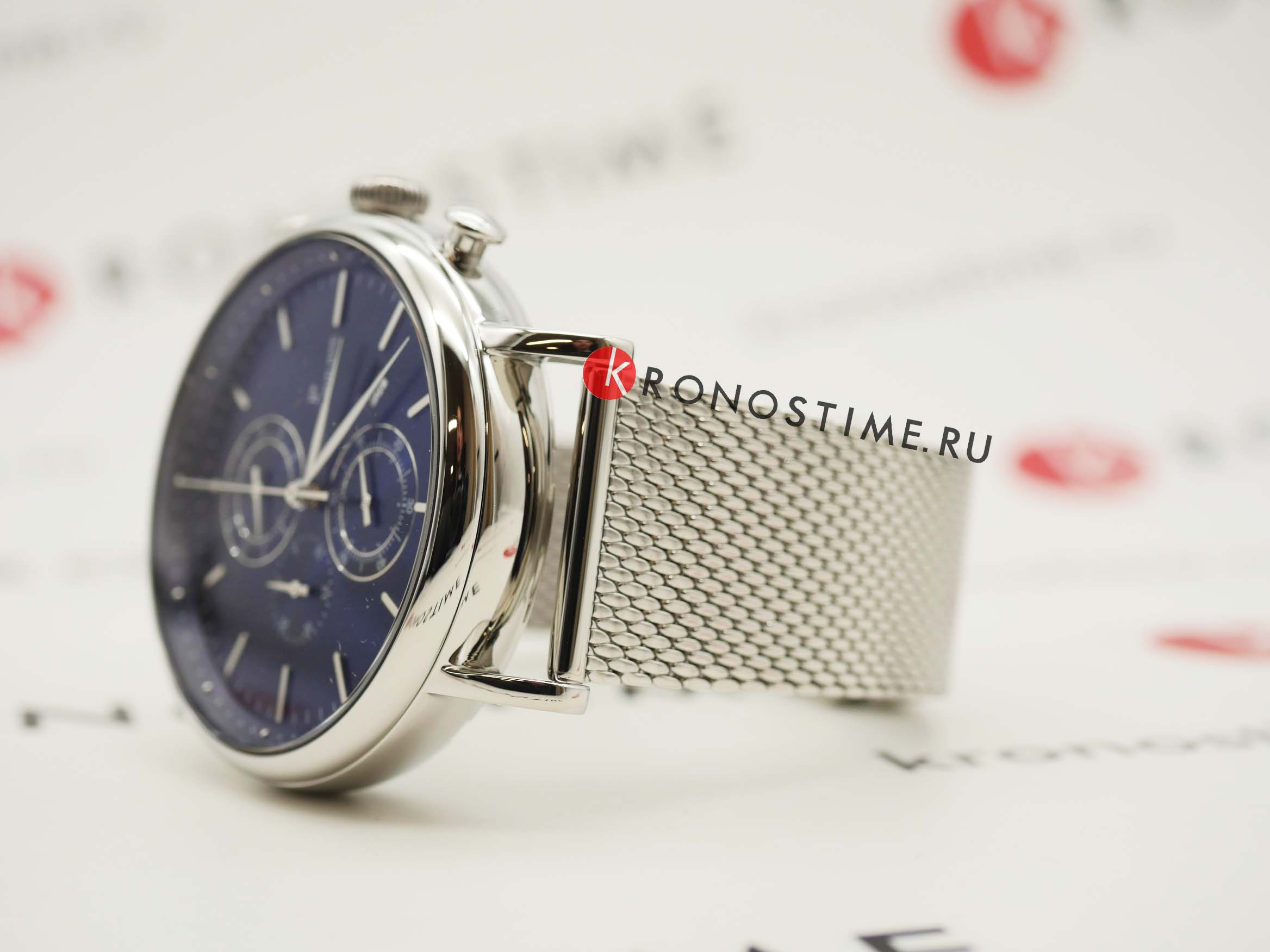 Швейцарские мужские часы-хронографХронографФункция позволяет измерять отрезки времени с особой точностью: часы, минуты, секунды. Верным признаком хронографа является наличие на циферблате 3 дополнительных окошек-счётчиков. Jacques Philippe Aviator JPQGC021236, кварцевый механизм с высокой точностью. Сапфировое стеклоСапфировое стеклоПрочный и надёжный материал из кристалла сапфира синтетического происхождения, характеризующийся особой твёрдостью и устойчивостью к царапинам и повреждениям. устойчивое к появлению царапин, обладающее высокой прозрачностью. Корпус часов изготовлен из нержавеющей стали. На циферблате три дополнительных индикатора. Окошко даты находится в положении 4 часов. Класс водозащиты: 50 метров, позволит защитить корпус от случайных брызг или капель дождя. Стальной браслет миланского плетения на раскладном замкеРаскладной замокДанный вариант застежки используется только на часах с металлическим браслетом. Отличительная особенность такого крепления в том, что длина браслета становится универсальной и вы можете самостоятельно отрегулировать нужный вам размер – застежка просто двигается по браслету часов..