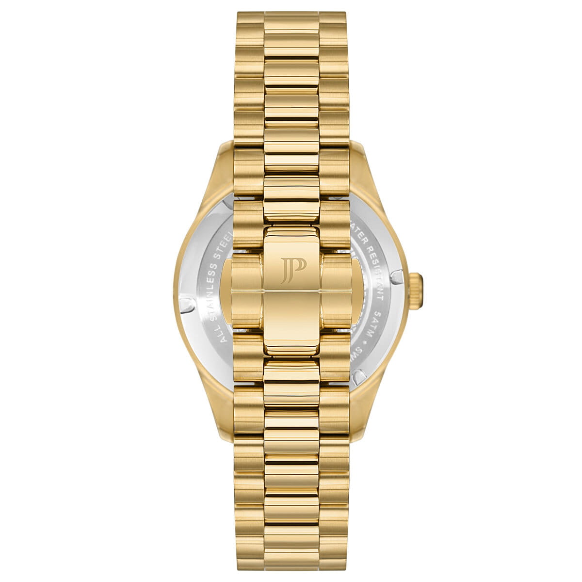 Швейцарские женские часы Jacques Philippe Solis JPQLS241386, кварцевый механизм с высокой точностью. Сапфировое стеклоСапфировое стеклоПрочный и надёжный материал из кристалла сапфира синтетического происхождения, характеризующийся особой твёрдостью и устойчивостью к царапинам и повреждениям. устойчивое к появлению царапин, обладающее высокой прозрачностью. Корпус и браслет часов изготовлены из нержавеющей стали с IP-покрытиемIP-покрытиеМетод ионного напыления. Демонстрирует повышенную устойчивость к истиранию, окислению и химическим веществам. Под воздействием высокого давления и температуры около 1500°C молекулы металла надёжно соединяются с частицами корпуса часов.. Класс водозащиты: 50 метров, позволит защитить корпус от случайных брызг или капель дождя. Стальной браслет на застёжке-бабочке с кнопкамиЗастёжка "бабочка"Такой вид застёжки дополняется предохранителями, помогающими избежать случайного раскрытия браслета. Обладают изящным исполнением. . Окошко даты находится в положении 3 часа. Стрелки и метки с люминесцентным покрытиемЛюминесцентное покрытиеПозволяет считывать показания времени в темноте. Производители наносят на стрелки, часовые индексы, безель или поверхность циферблата светонакопительный состав, дающий холодное свечение.. Циферблат инкрустирован кристаллами.