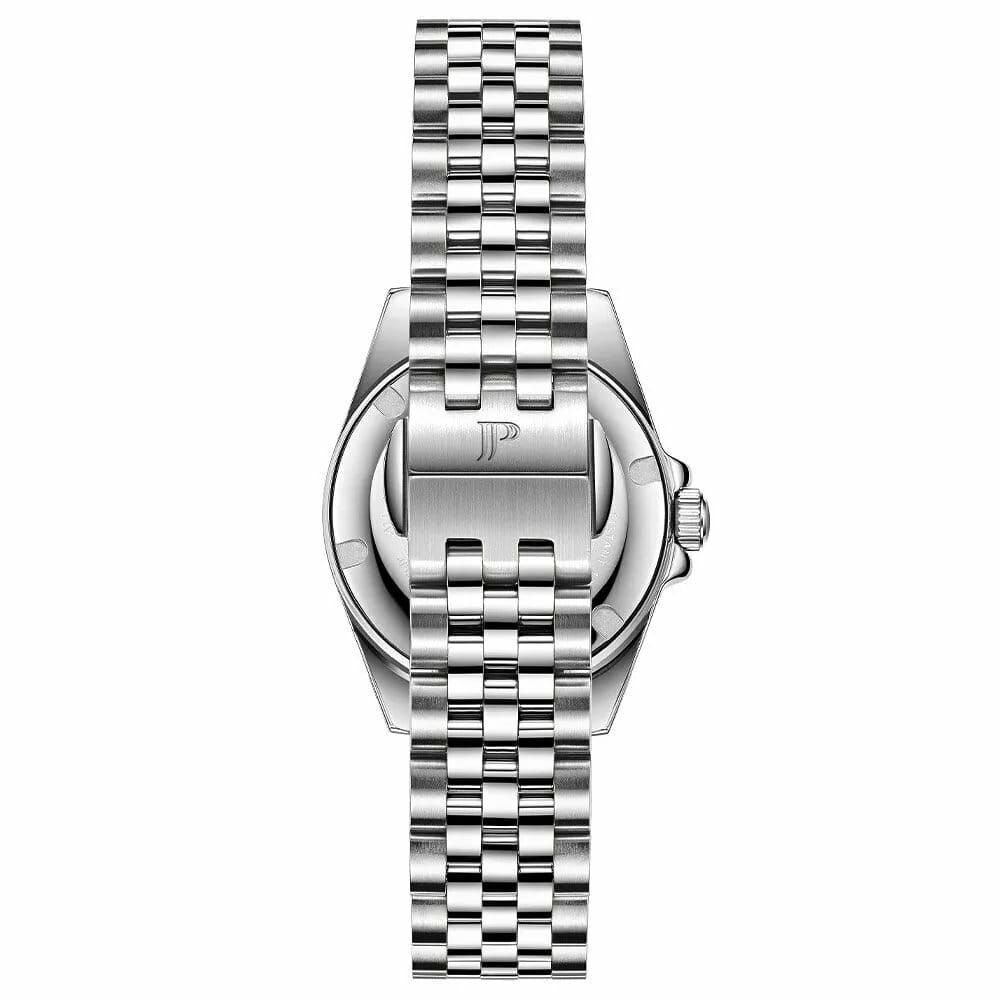 Jacques Philippe JPQLS5813X6 — женские часы в сдержанном классическом исполнении с акцентом на простоту и надёжность. Корпус диаметром 32 мм выполнен из нержавеющей стали — делает модель универсальной и комфортной в повседневной носке. Циферблат оформлен в светлом металлическом тоне с тонкими стрелками, лаконичными часовыми метками с люминесцентным покрытиемЛюминесцентное покрытиеПозволяет считывать показания времени в темноте. Производители наносят на стрелки, часовые индексы, безель или поверхность циферблата светонакопительный состав, дающий холодное свечение. и аккуратным окошком даты в позиции «3 часа». Минималистичный стиль подчёркивает строгость и чистоту дизайна. Поверхность защищена устойчивым к царапинам сапфировым стекломСапфировое стеклоПрочный и надёжный материал из кристалла сапфира синтетического происхождения, характеризующийся особой твёрдостью и устойчивостью к царапинам и повреждениям., которое обеспечивает хорошую читаемость и долговечность. Механизм — точный швейцарский кварц, не требующий подзавода. Он обеспечивает стабильную и бесперебойную работу часов, сохраняя точность в любых условиях. Браслет из нержавеющей стали на застёжке-бабочке с кнопкамиЗастёжка "бабочка"Такой вид застёжки дополняется предохранителями, помогающими избежать случайного раскрытия браслета. Обладают изящным исполнением. визуально продолжает корпус и фиксируется с помощью надёжной застёжки, обеспечивая комфортную посадку. Водозащита до 10 ATM позволяет использовать часы не только в повседневной жизни, но и при активности на воде. Jacques Philippe — это надёжная и универсальная модель для тех, кто ценит швейцарскую точность, простоту и уверенный стиль без лишних деталей.