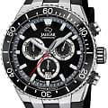 Мужские швейцарские часы-хронографХронографФункция позволяет измерять отрезки времени с особой точностью: часы, минуты, секунды. Верным признаком хронографа является наличие на циферблате 3 дополнительных окошек-счётчиков. Jaguar Ceramic J1021/3. Кварцевый швейцарский калибр Ronda 5030d. Сапфировое стеклоСапфировое стеклоПрочный и надёжный материал из кристалла сапфира синтетического происхождения, характеризующийся особой твёрдостью и устойчивостью к царапинам и повреждениям. устойчивое к мелким механическим повреждениям. Корпус часов изготовлен из нержавеющей стали. Стрелки и метки с люминесцентным покрытиемЛюминесцентное покрытиеПозволяет считывать показания времени в темноте. Производители наносят на стрелки, часовые индексы, безель или поверхность циферблата светонакопительный состав, дающий холодное свечение.. Окошко даты находится в положении 6 часов. Класс водозащиты: 100 метров, позволит плавать, нырять и заниматься другими водными видами спорта. Силиконовый ремешок на стандартной застёжке. БезельБезельВнешний ободок, закрепляющий стекло. В спортивных часах так называется поворотное кольцо с делениями на циферблате, выполняет роль таймера – замеряет отрезки времени на шкале. Неподвижный безель – элемент декора. Однонаправленно вращающийся безель на дайверских часах позволяет фиксировать моменты погружения и выныривания на поверхность. из высокотехнологичной керамикиВысокотехнологичная керамикаИнновационный запатентованный Rado материал с гладкой или матовой поверхностью. Керамика за счёт кристаллической структуры обладает повышенной устойчивостью от возникновения царапин. Материал способен принимать температуру тела человека, обеспечивая невероятный комфорт при ношении..