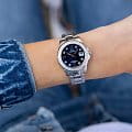 Женские швейцарские часы Jaguar Woman J892/3. Кварцевый швейцарский калибр Ronda 705. Сапфировое стеклоСапфировое стеклоПрочный и надёжный материал из кристалла сапфира синтетического происхождения, характеризующийся особой твёрдостью и устойчивостью к царапинам и повреждениям. устойчивое к мелким механическим повреждениям. Корпус и браслет часов изготовлены из нержавеющей стали, с безелем, инкрустированным цирконием. Стрелки с люминесцентным покрытиемЛюминесцентное покрытиеПозволяет считывать показания времени в темноте. Производители наносят на стрелки, часовые индексы, безель или поверхность циферблата светонакопительный состав, дающий холодное свечение.. Окошко даты находится в положении 3 часа. Класс водозащиты: 200 метров, позволит плавать, нырять и заниматься другими водными видами спорта. Стальной браслет на раскладной застёжкеРаскладная застёжкаТакой тип застёжки используется только на браслетах из металла. Она никогда не раскрывается полностью, происходит разделение на 2 и более частей. Раскладывающая застёжка снизит вероятность потери часов к минимуму.. Циферблат украшен кристаллами в роли часовых индексов.