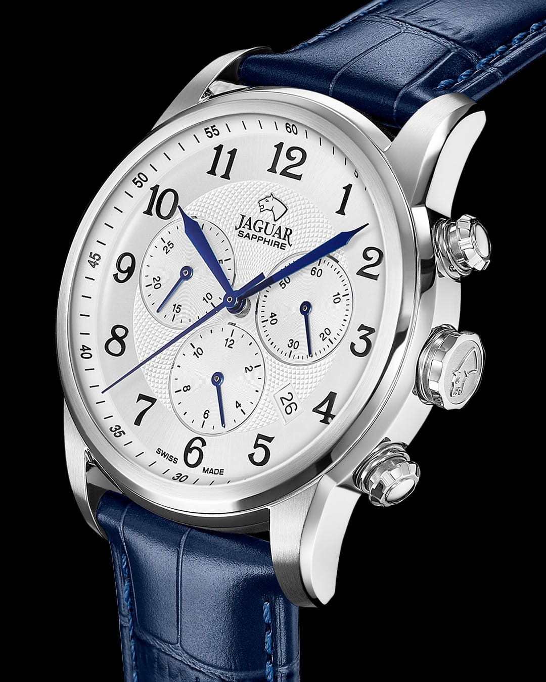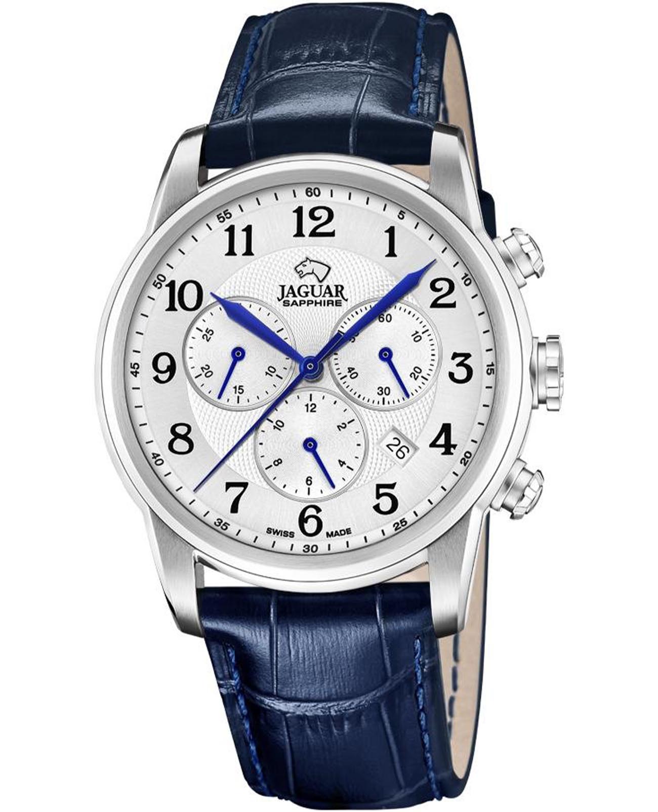 Мужские швейцарские часы-хронографХронографФункция позволяет измерять отрезки времени с особой точностью: часы, минуты, секунды. Верным признаком хронографа является наличие на циферблате 3 дополнительных окошек-счётчиков. Jaguar Acamar J968/4. Кварцевый швейцарский калибр RONDA 5030D. Сапфировое стеклоСапфировое стеклоПрочный и надёжный материал из кристалла сапфира синтетического происхождения, характеризующийся особой твёрдостью и устойчивостью к царапинам и повреждениям. устойчивое к мелким механическим повреждениям. Корпус часов изготовлен из нержавеющей стали. Окошко даты находится в положении между 4 и 5 часов. Класс водозащиты: 50 метров, позволит защитить корпус от случайных брызг или капель дождя. Кожаный ремешок на стандартной застёжке.