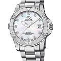 Женские швейцарские часы Jaguar Couple Diver J969/5. Кварцевый швейцарский калибр Ronda 6003.d. Сапфировое стеклоСапфировое стеклоПрочный и надёжный материал из кристалла сапфира синтетического происхождения, характеризующийся особой твёрдостью и устойчивостью к царапинам и повреждениям. устойчивое к мелким механическим повреждениям. Корпус и браслет часов изготовлены из нержавеющей стали. Стрелки и метки с люминесцентным покрытиемЛюминесцентное покрытиеПозволяет считывать показания времени в темноте. Производители наносят на стрелки, часовые индексы, безель или поверхность циферблата светонакопительный состав, дающий холодное свечение., 11 кристаллов в роли часовых индексов. Окошко даты находится в положении 3 часа. Класс водозащиты: 200 метров, позволит плавать, нырять и заниматься другими водными видами спорта. Стальной браслет на раскладной застёжкеРаскладная застёжкаТакой тип застёжки используется только на браслетах из металла. Она никогда не раскрывается полностью, происходит разделение на 2 и более частей. Раскладывающая застёжка снизит вероятность потери часов к минимуму..
