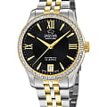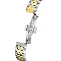 Женские швейцарские часы Jaguar Automatic Woman J998/2, механизм — автоподзавод. В часах с автоподзаводом заводная головка практически не используется, что исключает истирание ее материала и материала корпуса. Сапфировое стеклоСапфировое стеклоПрочный и надёжный материал из кристалла сапфира синтетического происхождения, характеризующийся особой твёрдостью и устойчивостью к царапинам и повреждениям. устойчивое к мелким механическим повреждениям. Корпус и браслет часов изготовлены из нержавеющей стали. Окошко даты находится в положении 6 часов. Класс водозащиты: 50 метров, позволит защитить корпус от случайных брызг или капель дождя. Стальной браслет с частичным PVD-покрытиемPVDУльтратонкое покрытие наносится в технике вакуумного напыления, сочетает в себе нитрид титана особой прочности со слоем золота или оксида хрома. Несёт в себе декоративную или защитную функцию. на застёжке-бабочке с кнопкамиЗастёжка "бабочка"Такой вид застёжки дополняется предохранителями, помогающими избежать случайного раскрытия браслета. Обладают изящным исполнением. . БезельБезельВнешний ободок, закрепляющий стекло. В спортивных часах так называется поворотное кольцо с делениями на циферблате, выполняет роль таймера – замеряет отрезки времени на шкале. Неподвижный безель – элемент декора. Однонаправленно вращающийся безель на дайверских часах позволяет фиксировать моменты погружения и выныривания на поверхность. с PVD-покрытиемPVDУльтратонкое покрытие наносится в технике вакуумного напыления, сочетает в себе нитрид титана особой прочности со слоем золота или оксида хрома. Несёт в себе декоративную или защитную функцию. инкрустирован цирконием.