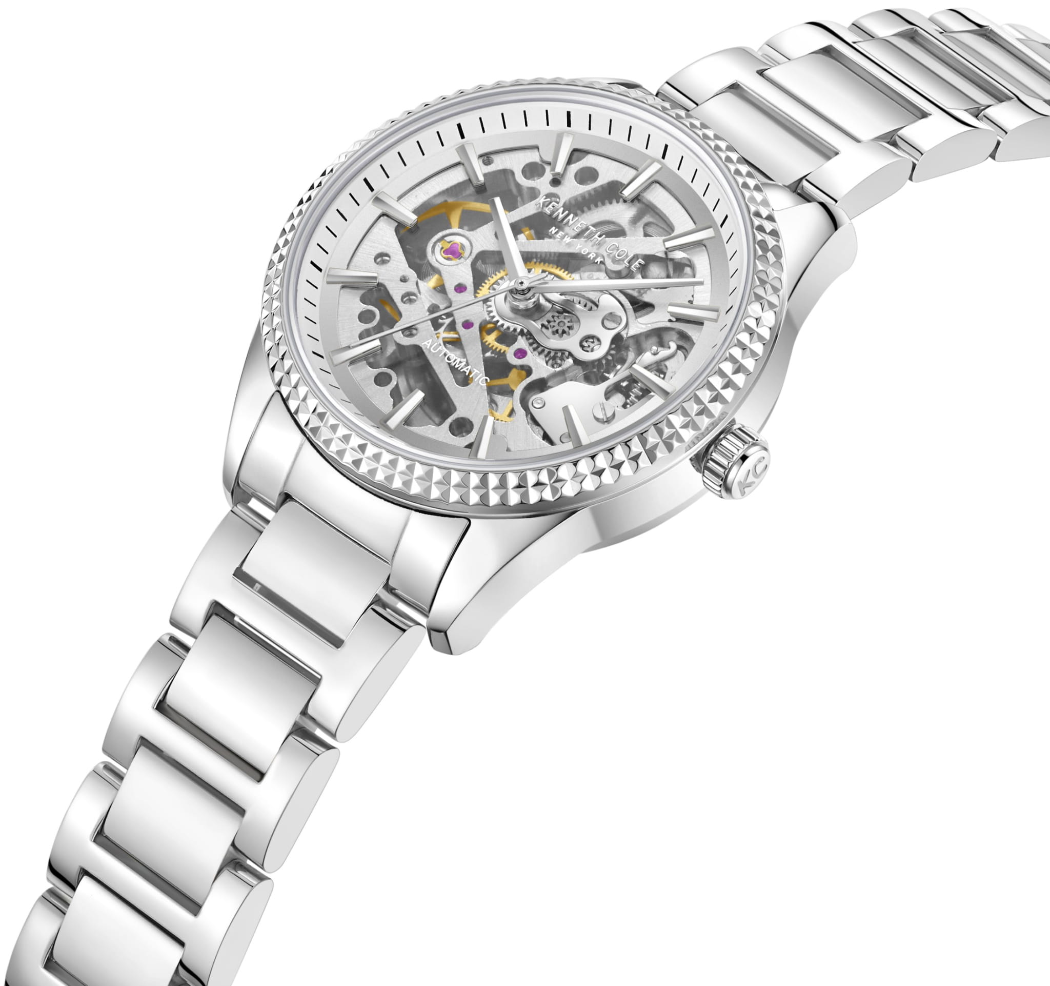 Американские женские часы-скелетоны с минеральным стекломМинеральное стеклоМинеральное стекло представляет собой искусственно выращенный минерал кварца. Такое стекло отличается особой устойчивостью к повреждениям и царапинам. Уступает по некоторым качествам сапфировому стеклу. Kenneth Cole New York KCWLL0016501, механический механизм (автоматический калибр) с высокой точностью. Класс водозащиты: 30 метров, позволит защитить корпус от случайных брызг или капель дождя. Корпус часов изготовлен из стали. Стальной браслет на раскладной застёжкеРаскладная застёжкаТакой тип застёжки используется только на браслетах из металла. Она никогда не раскрывается полностью, происходит разделение на 2 и более частей. Раскладывающая застёжка снизит вероятность потери часов к минимуму..