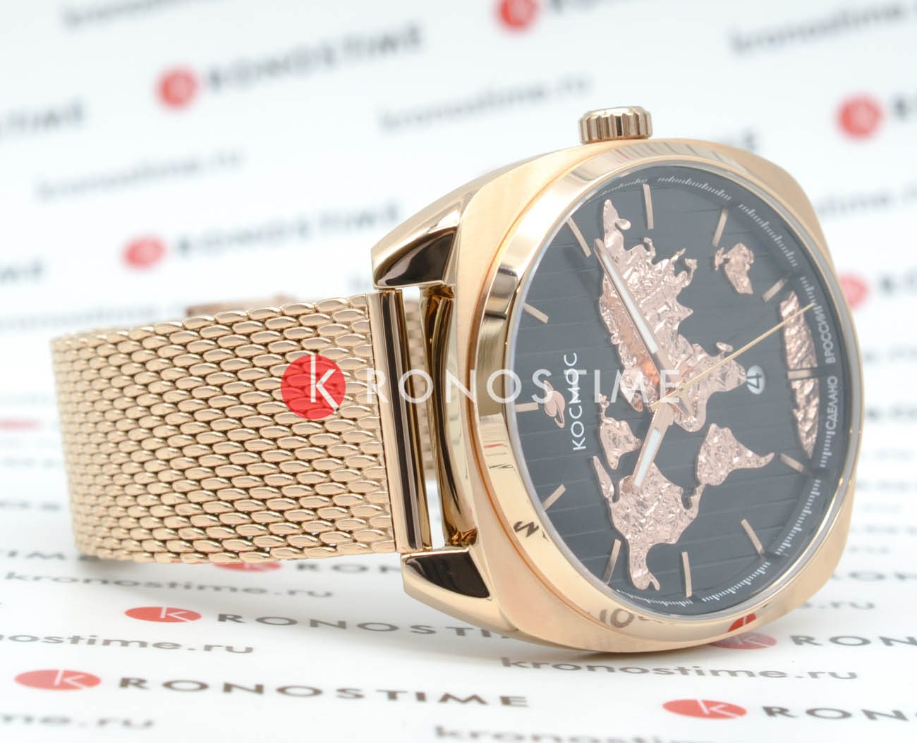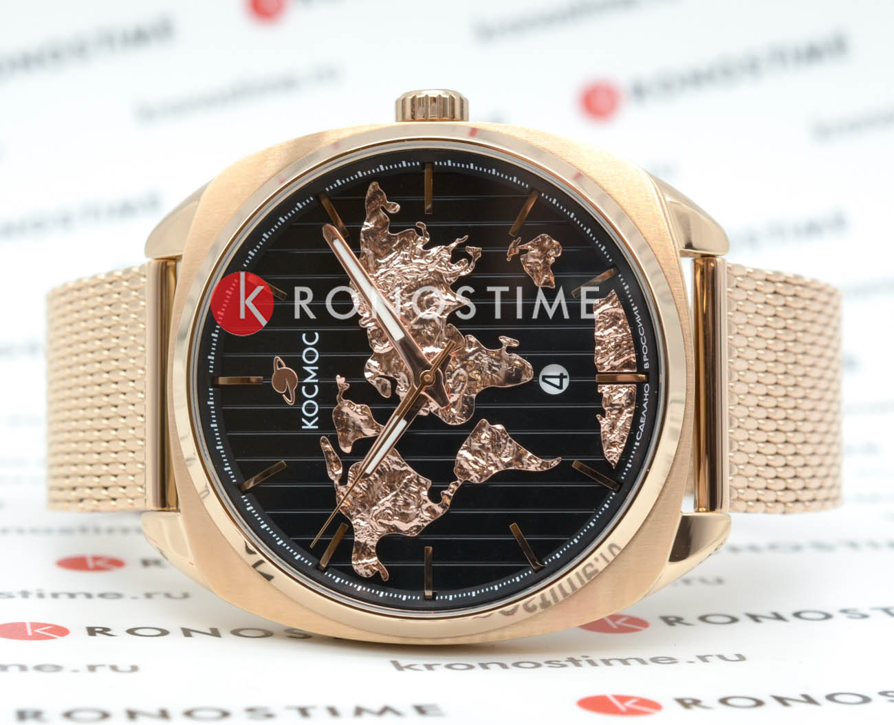 Мужские часы Космос D 113.49.31 из коллекции ЦУП станут идеальным аксессуаром для тех, кто ценит историю и традиции российского часового производства Механический механизм с автоподзаводом TMI, произведенный японской компанией Seiko, гарантирует высокую точность хода и долговечность работы. Прозрачная задняя крышка, крепящаяся на четырех винтах, позволяет рассмотреть механизм во всех подробностях, включая ротор автоподзавода, украшенный изображением космонавта. Корпус часов выполнен из нержавеющей стали марки 316L с IP-покрытиемIP-покрытиеМетод ионного напыления. Демонстрирует повышенную устойчивость к истиранию, окислению и химическим веществам. Под воздействием высокого давления и температуры около 1500°C молекулы металла надёжно соединяются с частицами корпуса часов., изображение очертаний континентов защищено прочным минеральным стекломМинеральное стеклоМинеральное стекло представляет собой искусственно выращенный минерал кварца. Такое стекло отличается особой устойчивостью к повреждениям и царапинам. Уступает по некоторым качествам сапфировому стеклу., устойчивым к царапинам. Окошко даты расположено в положении 6 часа, а стрелки имеют люминесцентное покрытиеЛюминесцентное покрытиеПозволяет считывать показания времени в темноте. Производители наносят на стрелки, часовые индексы, безель или поверхность циферблата светонакопительный состав, дающий холодное свечение., что позволяет определять время даже в темноте. Стальной браслет с IP-покрытиемIP-покрытиеМетод ионного напыления. Демонстрирует повышенную устойчивость к истиранию, окислению и химическим веществам. Под воздействием высокого давления и температуры около 1500°C молекулы металла надёжно соединяются с частицами корпуса часов. миланского плетения на раскладном замкеРаскладной замокДанный вариант застежки используется только на часах с металлическим браслетом. Отличительная особенность такого крепления в том, что длина браслета становится универсальной и вы можете самостоятельно отрегулировать нужный вам размер – застежка просто двигается по браслету часов.. Часы обладают водозащитой до 10 атм (WR100), что позволит использовать их при плавании и других водных видах спорта.