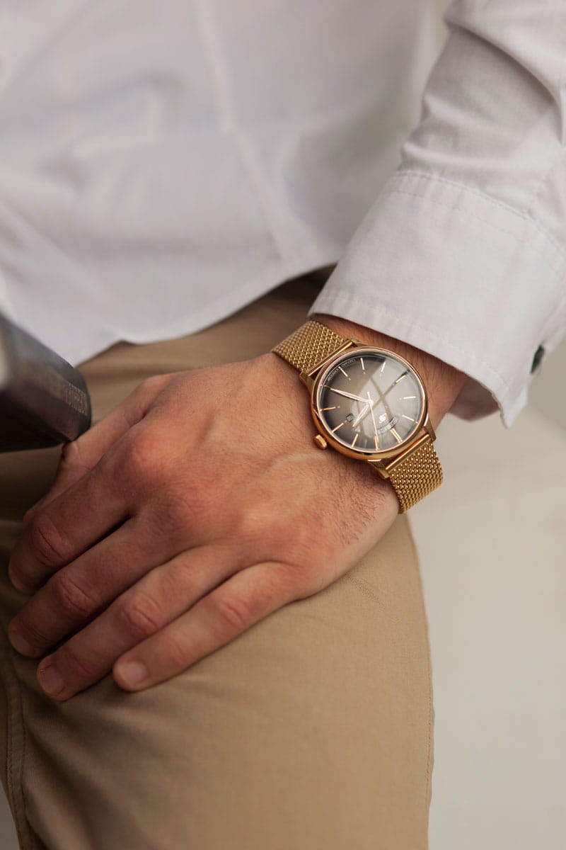 Российские кварцевые часы Космос K011.20.31 с механизмом калибра Miyota оснащены круглым корпусом из стали с PVD-покрытиемPVDУльтратонкое покрытие наносится в технике вакуумного напыления, сочетает в себе нитрид титана особой прочности со слоем золота или оксида хрома. Несёт в себе декоративную или защитную функцию. диаметром 41 мм и защищены прочным минеральным стекломМинеральное стеклоМинеральное стекло представляет собой искусственно выращенный минерал кварца. Такое стекло отличается особой устойчивостью к повреждениям и царапинам. Уступает по некоторым качествам сапфировому стеклу., устойчивым к механическим повреждениям. Черный циферблат дополнен функциями отображения числа и дня недели, а стрелки с люминесцентным покрытиемЛюминесцентное покрытиеПозволяет считывать показания времени в темноте. Производители наносят на стрелки, часовые индексы, безель или поверхность циферблата светонакопительный состав, дающий холодное свечение. обеспечивают хорошую видимость в темное время суток. Часы имеют класс водозащиты 50 метров, позволит защитить корпус от случайных брызг или капель дождя. Модель комплектуется стальным браслетом миланского плетения с PVD-покрытиемPVDУльтратонкое покрытие наносится в технике вакуумного напыления, сочетает в себе нитрид титана особой прочности со слоем золота или оксида хрома. Несёт в себе декоративную или защитную функцию. на раскладном замкеРаскладной замокДанный вариант застежки используется только на часах с металлическим браслетом. Отличительная особенность такого крепления в том, что длина браслета становится универсальной и вы можете самостоятельно отрегулировать нужный вам размер – застежка просто двигается по браслету часов.. Простой и элегантный дизайн делает эти часы универсальным аксессуаром для ценителей комфорта и практичности. Надежный кварцевый механизм обеспечивает точность хода и долговечность модели.