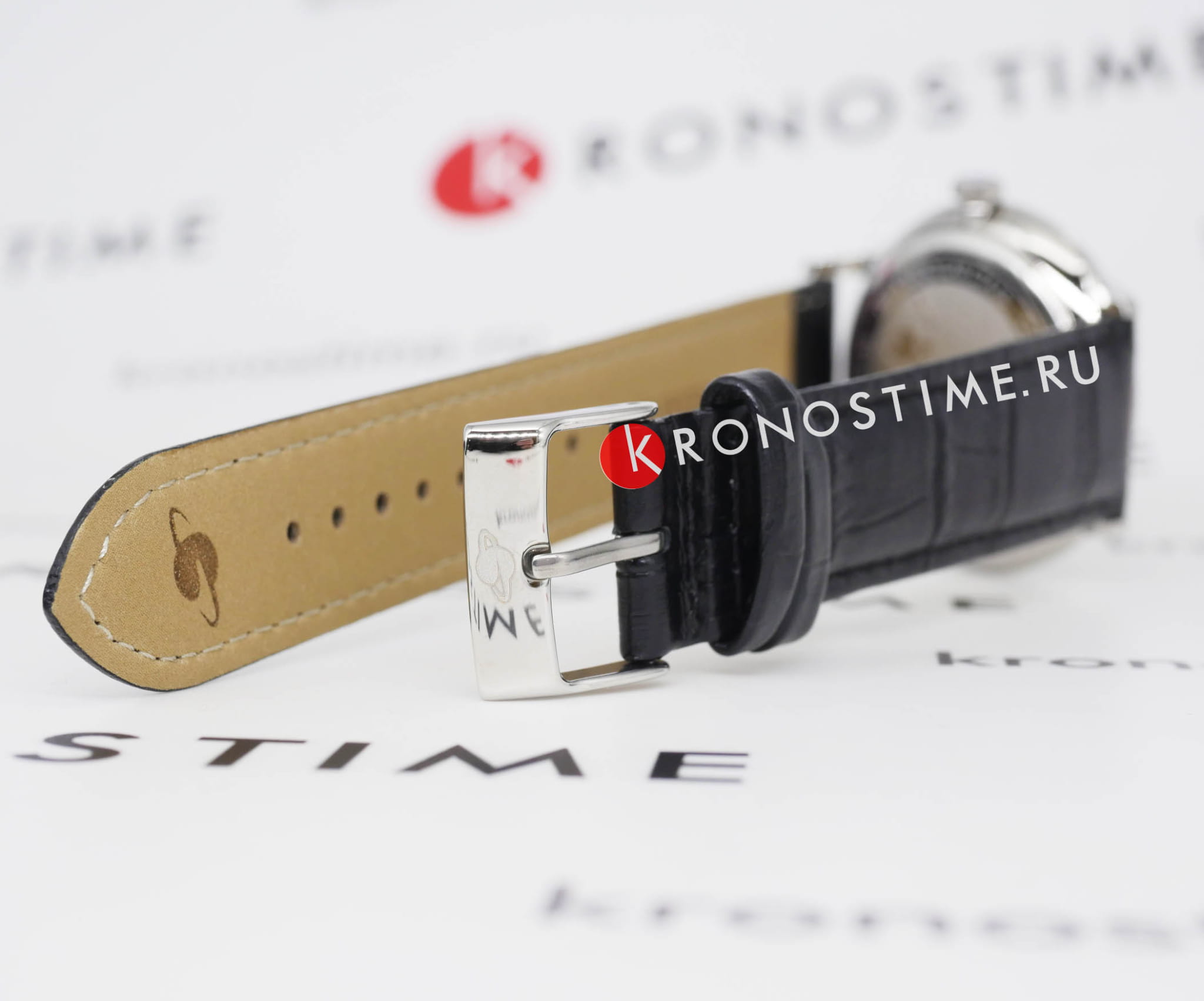 Мужские наручные часы Космос Сириус К 021.11.35 — это сочетание традиций часового искусства 60-70-х годов и футуристического дизайна, вдохновленного космическими исследованиями. Они не только служат напоминанием о прошлом, но и побуждают задуматься о будущем, позволяя наслаждаться качеством и смыслом, вложенными в каждую деталь. Полированный корпус часов выполнен в виде силуэта летающей тарелки благодаря выпуклым формам стекла и нижней части корпуса. Стальные ушки, которые напоминают опоры летающей тарелки, завершает общий образ. На задней крышке часов выгравирован фантазийный сюжет – космическая станция будущего. Бордовый циферблат в ретро-стиле с выгнутыми краями требует сложной технологии производства, что делает их аналогами часов прошлых эпох. Кончик секундной стрелки изогнут так, чтобы гармонировать с формой циферблата. Выпуклый градиентный циферблат украшен шлифовкой, напоминающей солнечные лучи, и ручными индексами, надежно закрепленными на двух штифтах. Специальное люминесцентное покрытиеЛюминесцентное покрытиеПозволяет считывать показания времени в темноте. Производители наносят на стрелки, часовые индексы, безель или поверхность циферблата светонакопительный состав, дающий холодное свечение. нанесено на часовую, минутную и секундную стрелки, а также на пунктирные метки и окантовку циферблата, создавая эффект светящегося изображения в темноте. Форма минерального стеклаМинеральное стеклоМинеральное стекло представляет собой искусственно выращенный минерал кварца. Такое стекло отличается особой устойчивостью к повреждениям и царапинам. Уступает по некоторым качествам сапфировому стеклу. также тщательно продумана — оно изогнуто как снаружи, так и изнутри. Эта конструкция предотвращает искажение изображения на циферблате, в отличие от традиционных стекол с прямой внутренней частью, которые могут создавать оптические искажения. Часы комплектуются кожаным браслетом черного цвета с прошивкой. Корпус изготовлен из гипоаллергенной стали, что обеспечивает комфорт при ношении. Заводная головка, застежка и ремешок украшены фирменным логотипом, подчеркивающим индивидуальность данной модели.