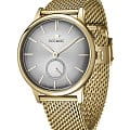 Мужские наручные часы Космос Сириус K 021.20.33 — это сочетание традиций часового искусства 60-70-х годов и футуристического дизайна, вдохновленного космическими исследованиями. Они не только служат напоминанием о прошлом, но и побуждают задуматься о будущем, позволяя наслаждаться качеством и смыслом, вложенными в каждую деталь. Полированный корпус часов выполнен в виде силуэта летающей тарелки благодаря выпуклым формам стекла и нижней части корпуса. Стальные ушки, которые напоминают опоры летающей тарелки, завершает общий образ. На задней крышке часов выгравирован фантазийный сюжет – космическая станция будущего. Серый циферблат в ретро-стиле с выгнутыми краями требует сложной технологии производства, что делает их аналогами часов прошлых эпох. Кончик секундной стрелки изогнут так, чтобы гармонировать с формой циферблата. Выпуклый градиентный циферблат украшен шлифовкой, напоминающей солнечные лучи, и ручными индексами, надежно закрепленными на двух штифтах. Специальное люминесцентное покрытиеЛюминесцентное покрытиеПозволяет считывать показания времени в темноте. Производители наносят на стрелки, часовые индексы, безель или поверхность циферблата светонакопительный состав, дающий холодное свечение. нанесено на часовую, минутную и секундную стрелки, а также на пунктирные метки и окантовку циферблата, создавая эффект светящегося изображения в темноте. Форма минерального стеклаМинеральное стеклоМинеральное стекло представляет собой искусственно выращенный минерал кварца. Такое стекло отличается особой устойчивостью к повреждениям и царапинам. Уступает по некоторым качествам сапфировому стеклу. также тщательно продумана — оно изогнуто как снаружи, так и изнутри. Эта конструкция предотвращает искажение изображения на циферблате, в отличие от традиционных стекол с прямой внутренней частью, которые могут создавать оптические искажения. Часы комплектуются стальным браслетом миланского плетения с IP-покрытиемIP-покрытиеМетод ионного напыления. Демонстрирует повышенную устойчивость к истиранию, окислению и химическим веществам. Под воздействием высокого давления и температуры около 1500°C молекулы металла надёжно соединяются с частицами корпуса часов., который дополнительно защищает от случайного падения. Корпус и браслет часов изготовлены из гипоаллергенной стали с IP-покрытиемIP-покрытиеМетод ионного напыления. Демонстрирует повышенную устойчивость к истиранию, окислению и химическим веществам. Под воздействием высокого давления и температуры около 1500°C молекулы металла надёжно соединяются с частицами корпуса часов., что обеспечивает комфорт при ношении. Заводная головка, застежка и ремешок украшены фирменным логотипом, подчеркивающим индивидуальность данной модели.
