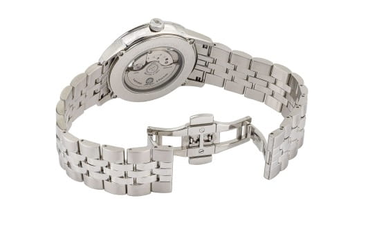 Мужские наручные часы Космос Телескоп K 304.10.34 — это уникальная лимитированная серия под названием Телескоп, посвящена аппарату приоткрывающего взгляду бескрайние дали космического пространства. Апертура открытого баланса модели по форме напоминает круглую линзу телескопа. Сквозь это окошко, расположенное на черном циферблате, также можно увидеть много интересного: ту самую систему «баланс-спираль» автоматического механизма, которая отвечает за точность хода. Корпус часов выполнен из нержавеющей стали, классической круглой формы и достаточно тонкий для механических моделей. Это стало возможным благодаря использованию механизма Miyota, калибр 9029, с высотой всего 3.9 мм. Циферблат декорирован вертикальной текстурой в ретро-стиле, по которой движутся крупные часовая и минутная стрелки, имеющие люминесцентное покрытиеЛюминесцентное покрытиеПозволяет считывать показания времени в темноте. Производители наносят на стрелки, часовые индексы, безель или поверхность циферблата светонакопительный состав, дающий холодное свечение., позволяющее определять время даже в темноте. Циферблат защищен прочным сапфировым стеклом с антибликовым покрытиемСапфировое стеклоПрочный и надёжный материал из кристалла сапфира синтетического происхождения, характеризующийся особой твёрдостью и устойчивостью к царапинам и повреждениям., обеспечивающим отличную читаемость показаний в любых условиях. Прозрачная задняя крышка, закрепленная на четырех винтах, демонстрирует механизм и содержит выгравированный индивидуальный номер экземпляра хх/50, отражающий лимитированный тираж всего в 50 штук. Браслет изготовлен из нержавеющей стали и оснащен удобной застёжкой «бабочка» с кнопкамиЗастёжка "бабочка"Такой вид застёжки дополняется предохранителями, помогающими избежать случайного раскрытия браслета. Обладают изящным исполнением. , которая сводит к минимуму вероятность потери. Модель Телескоп сочетает классический дизайн и универсальность, прекрасно подходя как к деловому костюму, так и к более повседневным образам.
