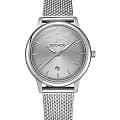 Женские наручные часы Космос Созвездие K 601.10.33 — это сочетание традиций часового искусства 60-70-х годов и футуристического дизайна, вдохновленного космическими исследованиями. Они не только служат напоминанием о прошлом, но и побуждают задуматься о будущем, позволяя наслаждаться качеством и смыслом, вложенными в каждую деталь. Полированный корпус часов выполнен в виде силуэта летающей тарелки благодаря выпуклым формам стекла и нижней части корпуса. Стальные ушки, которые напоминают опоры летающей тарелки, завершает общий образ. На задней крышке часов выгравирован фантазийный сюжет – космическая станция будущего. Название коллекции Созвездие – идеально отражает разнообразие моделей с яркими, но тщательно подобранными цветами. Серебристый циферблат выполнен в ретро стиле, с выгнутыми краями, что требует применения сложной производственной технологии. Такой дизайн был характерен для часов прошлых лет. Кончик секундной стрелки также изогнут, следуя форме циферблата. Выпуклый градиентный циферблат украшен шлифовкой в стиле солнечных лучей и ручными индексами, которые фиксируются на двух штифтах. Окошко даты обрамлено стальной рамкой, что добавляет часам утонченности и элегантности. Часовая и минутная стрелки, а также круг по краю циферблата, напоминающий ореол Земли, с  люминесцентным покрытиемЛюминесцентное покрытиеПозволяет считывать показания времени в темноте. Производители наносят на стрелки, часовые индексы, безель или поверхность циферблата светонакопительный состав, дающий холодное свечение., которое светится в темноте, создавая завораживающий эффект. Форма минерального стеклаМинеральное стеклоМинеральное стекло представляет собой искусственно выращенный минерал кварца. Такое стекло отличается особой устойчивостью к повреждениям и царапинам. Уступает по некоторым качествам сапфировому стеклу. тщательно продумана: оно выгнуто как снаружи, так и изнутри. Такая конструкция исключает искажения изображения на циферблате, в отличие от обычного стекла. Часы оснащены гибким и прочным браслетом из миланского плетения. Заводная головка, застежка и ремешок украшены фирменным логотипом.