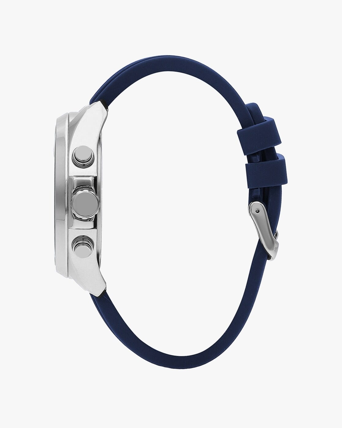 Lee Cooper LC07432.399 — элегантная модель с функциональными возможностями для повседневного использования. Круглый корпус из нержавеющей стали диаметром 48 мм придаёт часам классический и современный вид. Циферблат защищён минеральным стекломМинеральное стеклоМинеральное стекло представляет собой искусственно выращенный минерал кварца. Такое стекло отличается особой устойчивостью к повреждениям и царапинам. Уступает по некоторым качествам сапфировому стеклу., устойчивым к царапинам, хорошо может выдержать небольшие удары и падения. Часы работают на кварцевом механизме, обеспечивающем точность хода. Каучуковый ремешок синего цвета на стандартной застёжке гарантирует удобную посадку и надёжную фиксацию на запястье. Водозащита 50 метров защищает часы от брызг и дождя, делая их подходящими для повседневного использования. Стрелки и метки покрыты люминесцентным покрытиемЛюминесцентное покрытиеПозволяет считывать показания времени в темноте. Производители наносят на стрелки, часовые индексы, безель или поверхность циферблата светонакопительный состав, дающий холодное свечение., обеспечивающим отличную читаемость в темноте.