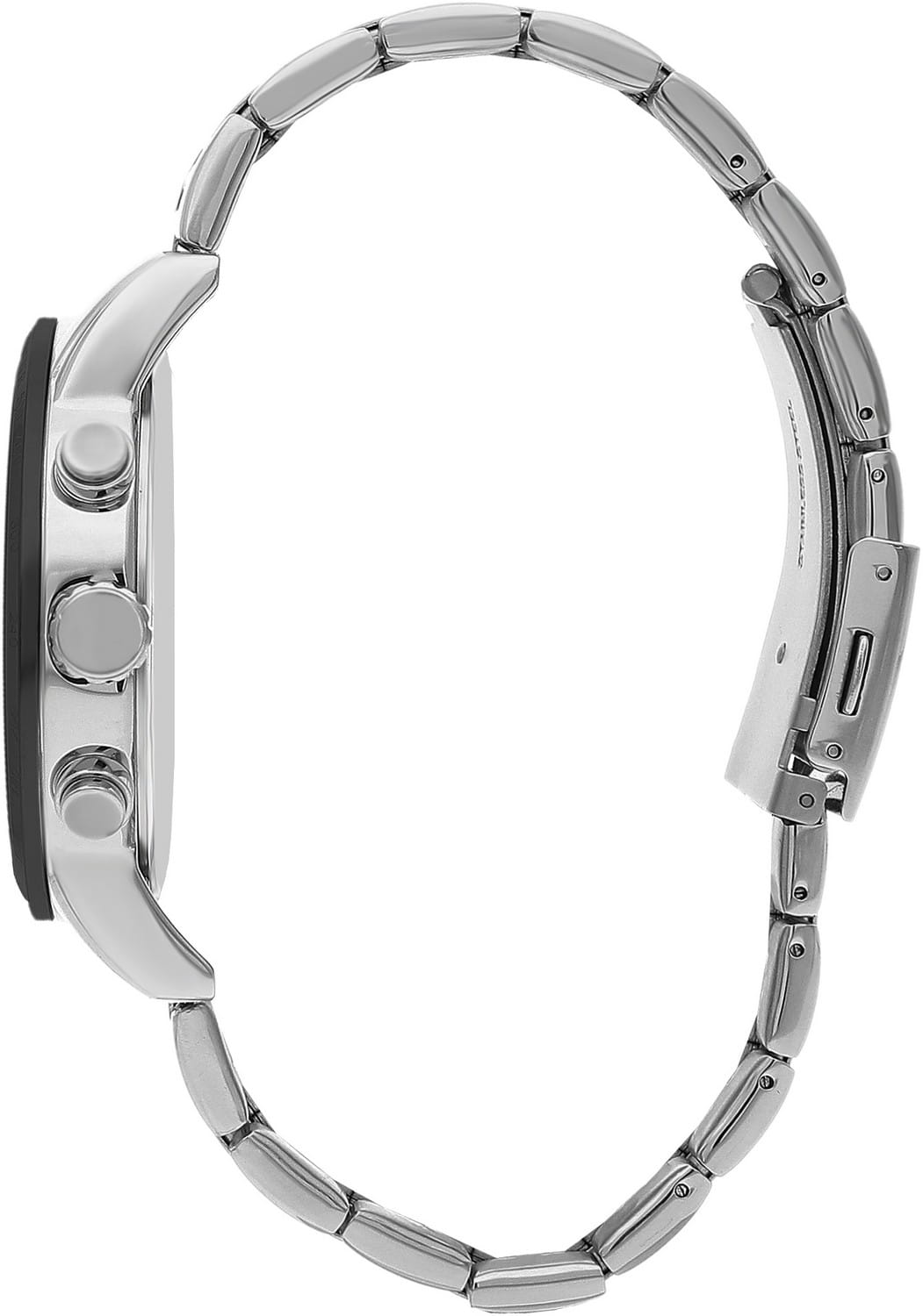 Мужские часы Lee Cooper LC07505.380 — это стильное сочетание элегантности и современного дизайна. Круглый корпус диаметром 44 мм выполнен из суперметалла серебристого цвета. Неподвижный безельБезельВнешний ободок, закрепляющий стекло. В спортивных часах так называется поворотное кольцо с делениями на циферблате, выполняет роль таймера – замеряет отрезки времени на шкале. Неподвижный безель – элемент декора. Однонаправленно вращающийся безель на дайверских часах позволяет фиксировать моменты погружения и выныривания на поверхность. с IP-покрытиемIP-покрытиеМетод ионного напыления. Демонстрирует повышенную устойчивость к истиранию, окислению и химическим веществам. Под воздействием высокого давления и температуры около 1500°C молекулы металла надёжно соединяются с частицами корпуса часов. черного цвета придает модели особый вид. Бордовый циферблат защищен минеральным стекломМинеральное стеклоМинеральное стекло представляет собой искусственно выращенный минерал кварца. Такое стекло отличается особой устойчивостью к повреждениям и царапинам. Уступает по некоторым качествам сапфировому стеклу., обеспечивающим устойчивость к царапинам. Метки в виде штрихов. Часы оснащены надежным кварцевым механизмом, а металлический браслет на раскладной застёжкеРаскладная застёжкаТакой тип застёжки используется только на браслетах из металла. Она никогда не раскрывается полностью, происходит разделение на 2 и более частей. Раскладывающая застёжка снизит вероятность потери часов к минимуму. гарантирует комфортную посадку на запястье. Окошко даты находится в положении между 4 и 5 часов. Стрелки и метки с люминесцентным покрытиемЛюминесцентное покрытиеПозволяет считывать показания времени в темноте. Производители наносят на стрелки, часовые индексы, безель или поверхность циферблата светонакопительный состав, дающий холодное свечение. позволяют легко считывать время даже в условиях недостаточного освещения. Водозащита 50 метров позволит защитить корпус от случайных брызг или капель дождя. Lee Cooper  — отличный выбор для тех, кто ценит утонченность и качество.