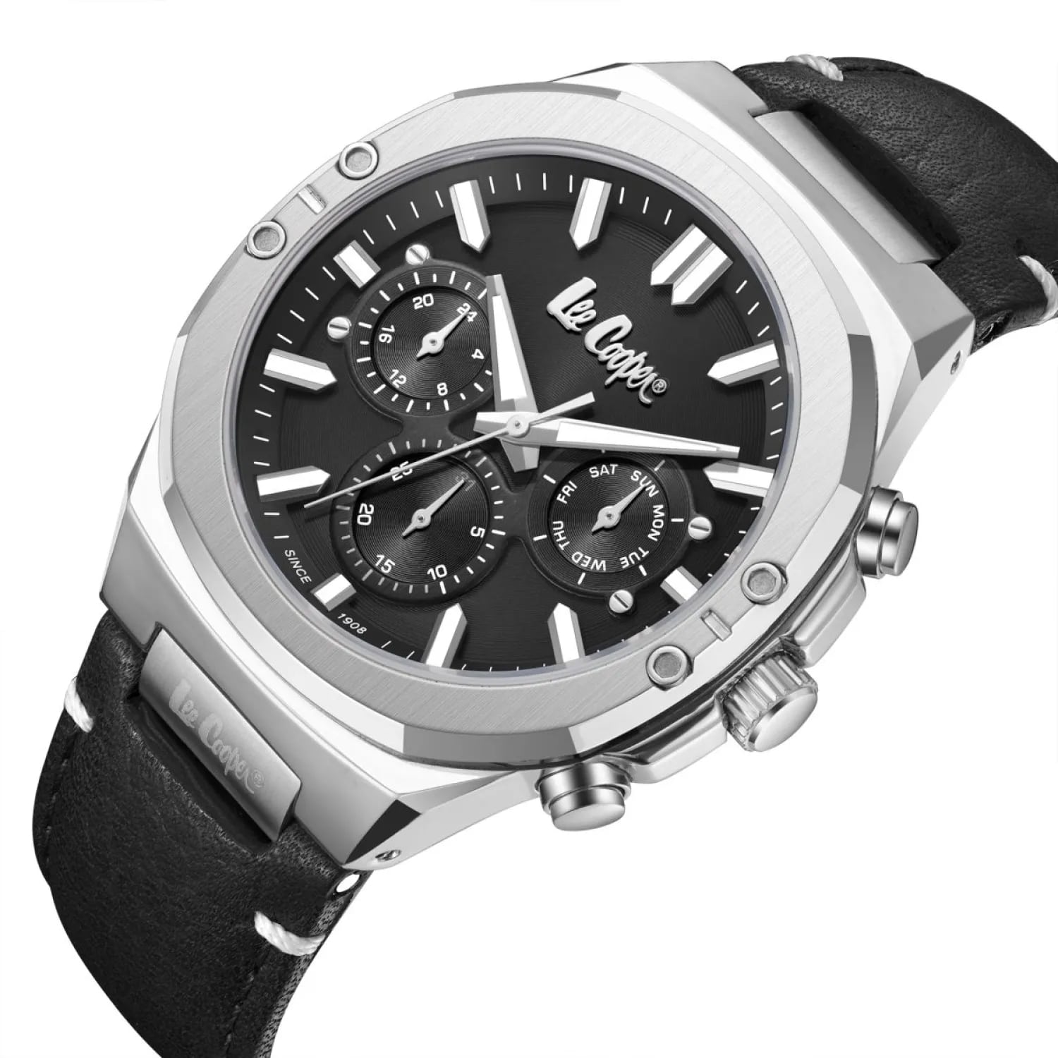 Мужские часы Lee Cooper LC07992.351 – это стильное и современное решение для тех, кто ценит качество и элегантность. Эти часы идеально подойдут как для повседневной носки, так и для особых случаев.  Корпус диаметром 44 мм изготовлен из нержавеющей стали, что обеспечивает долговечность. Минеральное стеклоМинеральное стеклоМинеральное стекло представляет собой искусственно выращенный минерал кварца. Такое стекло отличается особой устойчивостью к повреждениям и царапинам. Уступает по некоторым качествам сапфировому стеклу. надёжно защищает циферблат от царапин и повреждений, сохраняя его безупречный вид. Часы оснащены высокоточным кварцевым механизмом, который гарантирует стабильный ход и надёжность в эксплуатации. Уровень водонепроницаемости 50 метров позволяет не беспокоиться о случайных брызгах воды в повседневной жизни, но не рекомендуется использовать часы при плавании. Удобный и прочный кожаный ремешок черного цвета, выполненный из качественных материалов, дополнен классическим замком, что обеспечивает комфортную посадку и надёжность при носке. Часы LC07992.351 обладают современным и лаконичным дизайном, который прекрасно гармонирует с любым стилем одежды. Эта модель – отличный выбор для тех, кто ищет сочетание стиля, качества и функциональности. Часы станут не только полезным аксессуаром, но и выразительным элементом вашего имиджа.