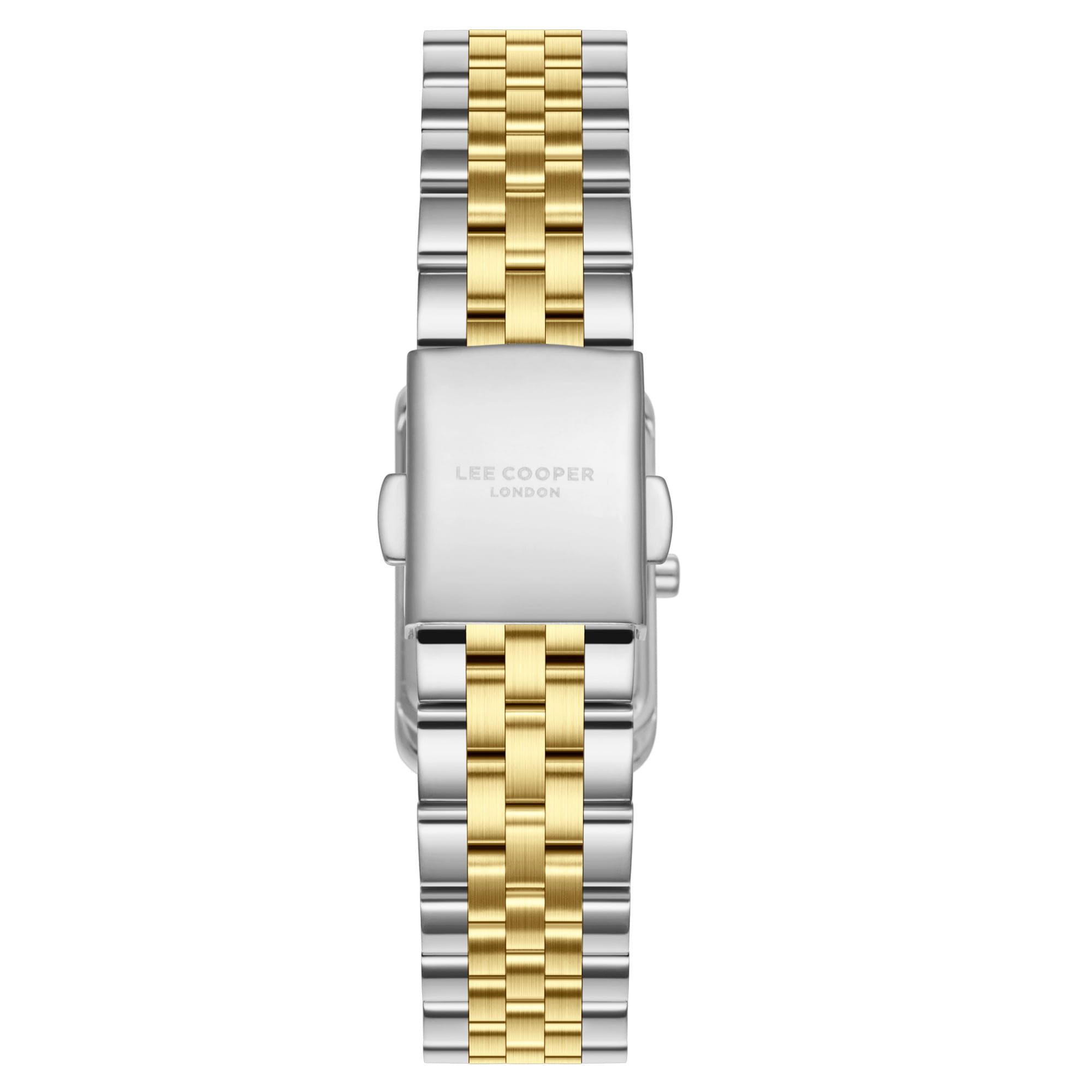 Женские кварцевые часы Lee Cooper — это стильный аксессуар, сочетающий в себе элегантность и надёжность. Модель выполнена из с частичным IP-покрытиемIP-покрытиеМетод ионного напыления. Демонстрирует повышенную устойчивость к истиранию, окислению и химическим веществам. Под воздействием высокого давления и температуры около 1500°C молекулы металла надёжно соединяются с частицами корпуса часов. цвета жёлтого золота, что придаёт ей благородный внешний вид и устойчивость к царапинам. Корпус имеет размеры 21x31 мм, а его поверхность защищена минеральным закалённым стекломМинеральное стеклоМинеральное стекло представляет собой искусственно выращенный минерал кварца. Такое стекло отличается особой устойчивостью к повреждениям и царапинам. Уступает по некоторым качествам сапфировому стеклу., устойчивым к повреждениям. Стальной браслет с покрытием шириной 18 мм оснащён Раскладная застёжкаРаскладная застёжкаТакой тип застёжки используется только на браслетах из металла. Она никогда не раскрывается полностью, происходит разделение на 2 и более частей. Раскладывающая застёжка снизит вероятность потери часов к минимуму., обеспечивающей комфорт и надёжную фиксацию на запястье. Водонепроницаемость позволяет использовать модель при мытье рук или под лёгким дождём. Гарантия 2 года подтверждает качество и долговечность изделия. Эти часы станут универсальным аксессуаром для тех, кто ценит сочетание стиля, функциональности и безупречного качества — идеальный выбор для повседневной носки и торжественных случаев.