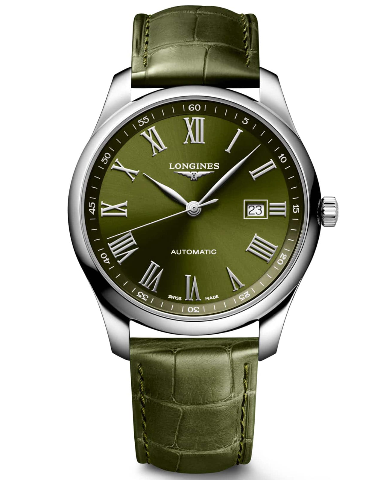 Швейцарские механические часы Longines Master Collection L2.893.4.09.2. Сапфировое стеклоСапфировое стеклоПрочный и надёжный материал из кристалла сапфира синтетического происхождения, характеризующийся особой твёрдостью и устойчивостью к царапинам и повреждениям. устойчивое к появлению царапин, обладающее высокой прозрачностью. Корпус часов изготовлен из нержавеющей стали. Окошко даты в положении 3 часа. Автоматический механизм с частотой баланса 25 200 полуколебаний в час и запасом хода, которого хватает примерно на 72 часа работы. Класс водозащиты: 30 метров, позволит защитить корпус от случайных брызг или капель дождя. Ремешок из кожи аллигатора на застёжке «бабочка» с кнопкамиЗастёжка "бабочка"Такой вид застёжки дополняется предохранителями, помогающими избежать случайного раскрытия браслета. Обладают изящным исполнением. .