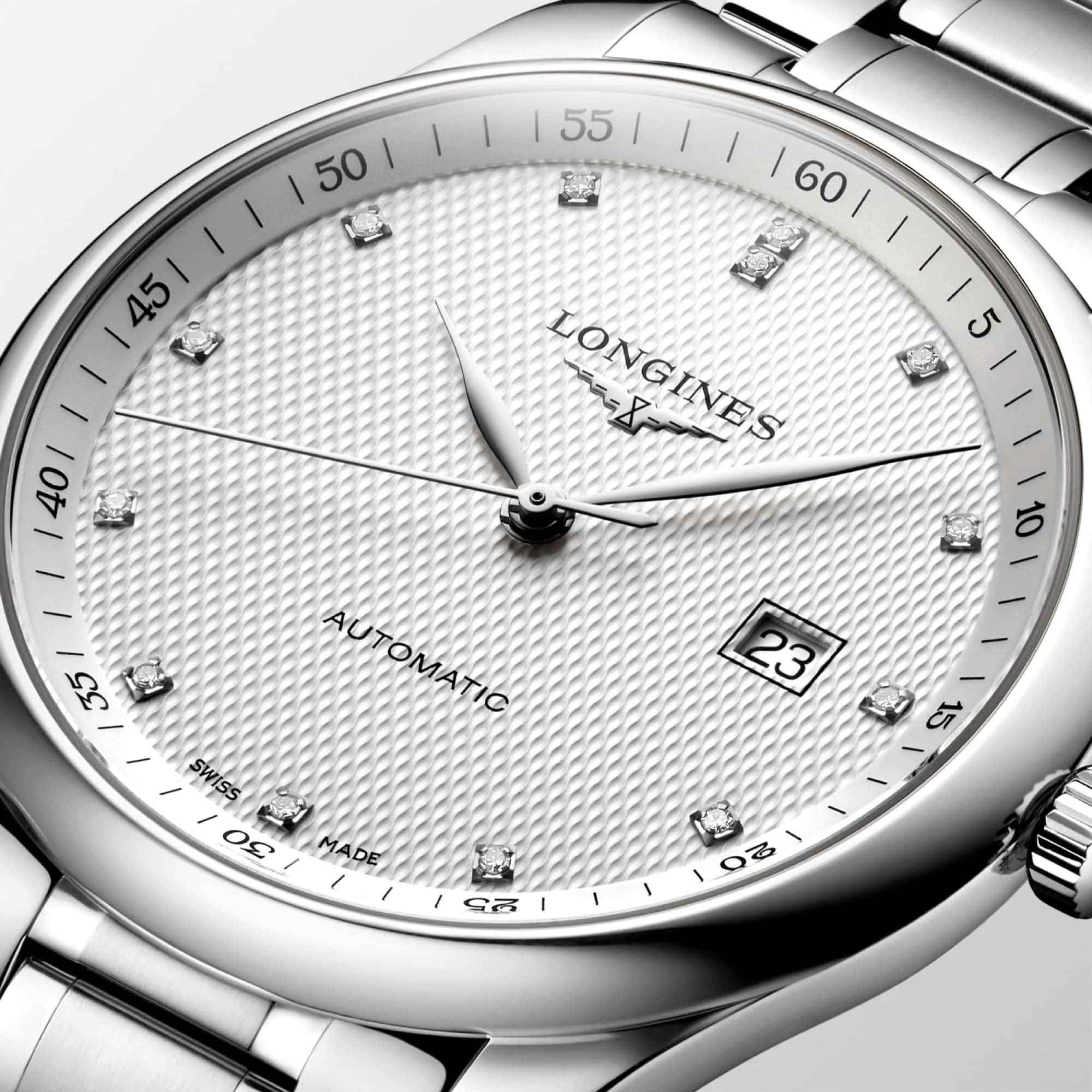 Швейцарские механические часы Longines Master Collection L2.893.4.77.6. Сапфировое стеклоСапфировое стеклоПрочный и надёжный материал из кристалла сапфира синтетического происхождения, характеризующийся особой твёрдостью и устойчивостью к царапинам и повреждениям. устойчивое к появлению царапин, обладающее высокой прозрачностью. Корпус часов изготовлен из нержавеющей стали. Циферблат с 13 бриллиантами группы Top Wesselton VS-SI общим весом 0.059 карата. Окошко даты в положении 3 часа. Автоматический механизм с частотой баланса 25 200 полуколебаний в час и запасом хода, которого хватает примерно на 72 часа работы. Класс водозащиты: 30 метров, позволит защитить корпус от случайных брызг или капель дождя. Стальной браслет на застёжке «бабочка» с кнопкамиЗастёжка "бабочка"Такой вид застёжки дополняется предохранителями, помогающими избежать случайного раскрытия браслета. Обладают изящным исполнением. .