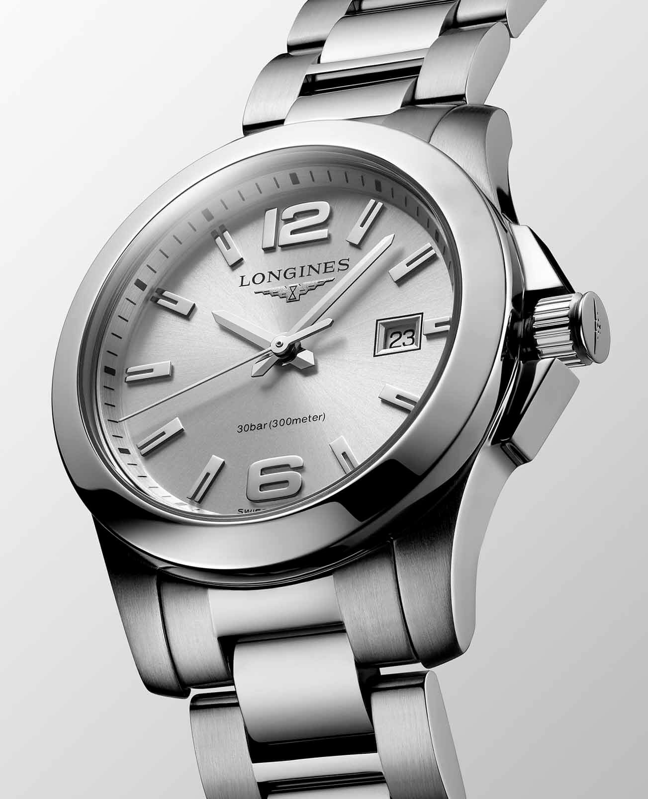 Женские кварцевые швейцарские часы Longines Conquest L3.376.4.76.6 – это гармоничное сочетание делового стиля и элегантности, созданное специально для современных женщин, ценящих одновременно строгость и изысканность.Корпус из нержавеющей стали, защищенный стойким PVD-покрытиемPVDУльтратонкое покрытие наносится в технике вакуумного напыления, сочетает в себе нитрид титана особой прочности со слоем золота или оксида хрома. Несёт в себе декоративную или защитную функцию., демонстрирует надежность и прочность, свойственные спортивным моделям, но при этом сохраняет элегантность, необходимую для офисного дресс-кода.