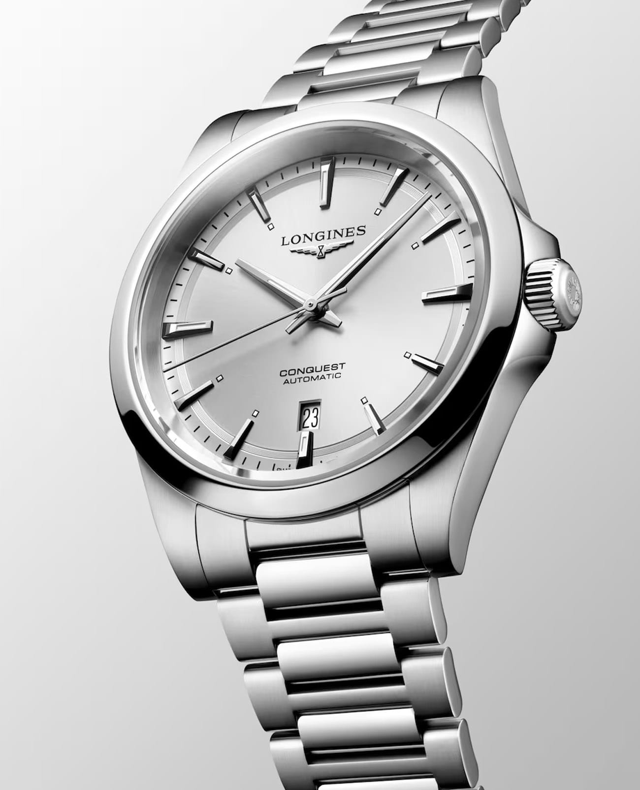 Мужские швейцарские механические часы с автоподзаводом Longines Conquest L3.830.4.72.6. Сапфировое стеклоСапфировое стеклоПрочный и надёжный материал из кристалла сапфира синтетического происхождения, характеризующийся особой твёрдостью и устойчивостью к царапинам и повреждениям. устойчивое к появлению царапин, обладающее высокой прозрачностью. Корпус часов изготовлен из нержавеющей стали. Циферблат выполнен по технологии Sunray (солнечные лучи). Стрелки и метки с люминесцентным покрытиемЛюминесцентное покрытиеПозволяет считывать показания времени в темноте. Производители наносят на стрелки, часовые индексы, безель или поверхность циферблата светонакопительный состав, дающий холодное свечение.. Окошко даты в положении 6 часов. Прозрачная задняя крышка. Класс водозащиты: 100 метров, позволит плавать, нырять и заниматься другими водными видами спорта. Стальной браслет на раскладной застёжкеРаскладная застёжкаТакой тип застёжки используется только на браслетах из металла. Она никогда не раскрывается полностью, происходит разделение на 2 и более частей. Раскладывающая застёжка снизит вероятность потери часов к минимуму..