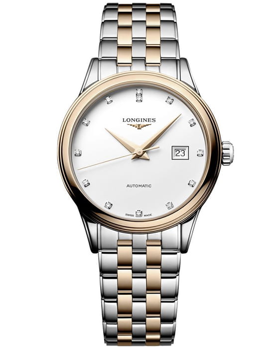 Стальной браслет с частичным PVD-покрытиемPVDУльтратонкое покрытие наносится в технике вакуумного напыления, сочетает в себе нитрид титана особой прочности со слоем золота или оксида хрома. Несёт в себе декоративную или защитную функцию. на застёжке-бабочке с кнопкамиЗастёжка "бабочка"Такой вид застёжки дополняется предохранителями, помогающими избежать случайного раскрытия браслета. Обладают изящным исполнением. подчеркивает стиль и изысканность модели, делая ее идеальным выбором для тех, кто ценит качество и элегантность. Longines Flagship — это не просто часы, а настоящее произведение часового искусства, способное подчеркнуть вашу индивидуальность и статус.