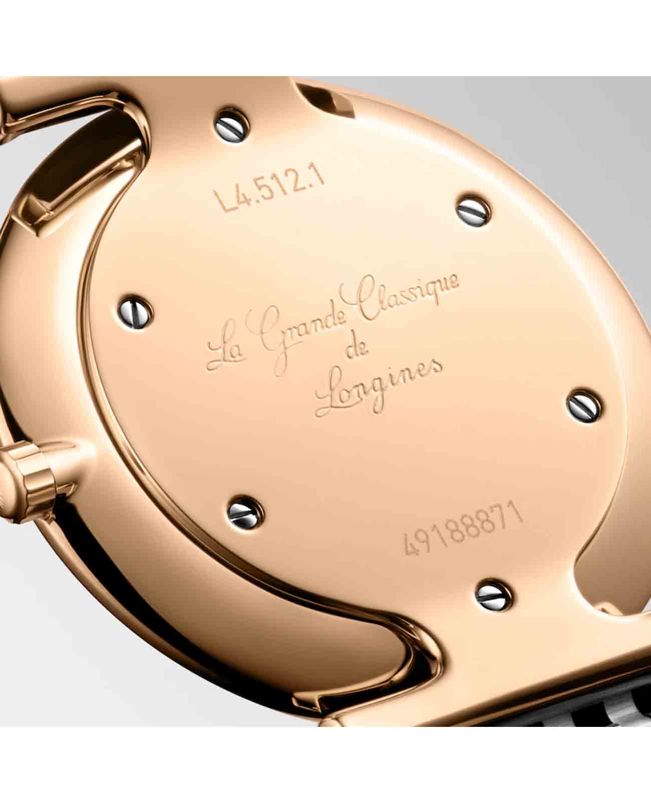 Женские швейцарские часы Longines La Grande Classique L4.512.1.97.7 воплощают в себе гармонию элегантности и функциональности. Оснащённые высокоточным кварцевым механизмом, они демонстрируют непревзойденную точность и стабильность работы. Сапфировое стеклоСапфировое стеклоПрочный и надёжный материал из кристалла сапфира синтетического происхождения, характеризующийся особой твёрдостью и устойчивостью к царапинам и повреждениям. характеризуется повышенной устойчивостью к царапинам и отличной прозрачностью, что обеспечивает идеальную видимость циферблата в любых условиях.