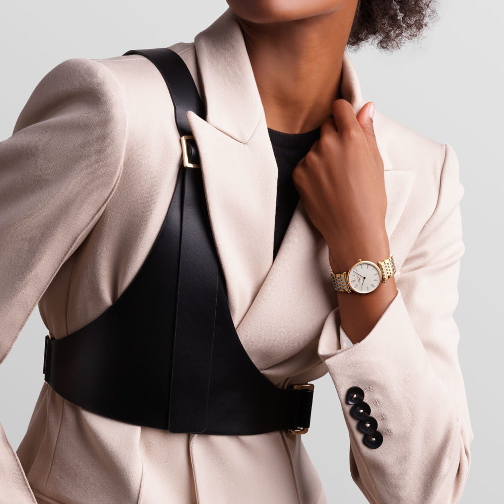 Стальной браслет с частичным PVD-покрытиемPVDУльтратонкое покрытие наносится в технике вакуумного напыления, сочетает в себе нитрид титана особой прочности со слоем золота или оксида хрома. Несёт в себе декоративную или защитную функцию. и застёжкой-бабочкой с кнопкамиЗастёжка "бабочка"Такой вид застёжки дополняется предохранителями, помогающими избежать случайного раскрытия браслета. Обладают изящным исполнением. завершает композицию, создавая ощущение комфорта и уверенности при ношении.