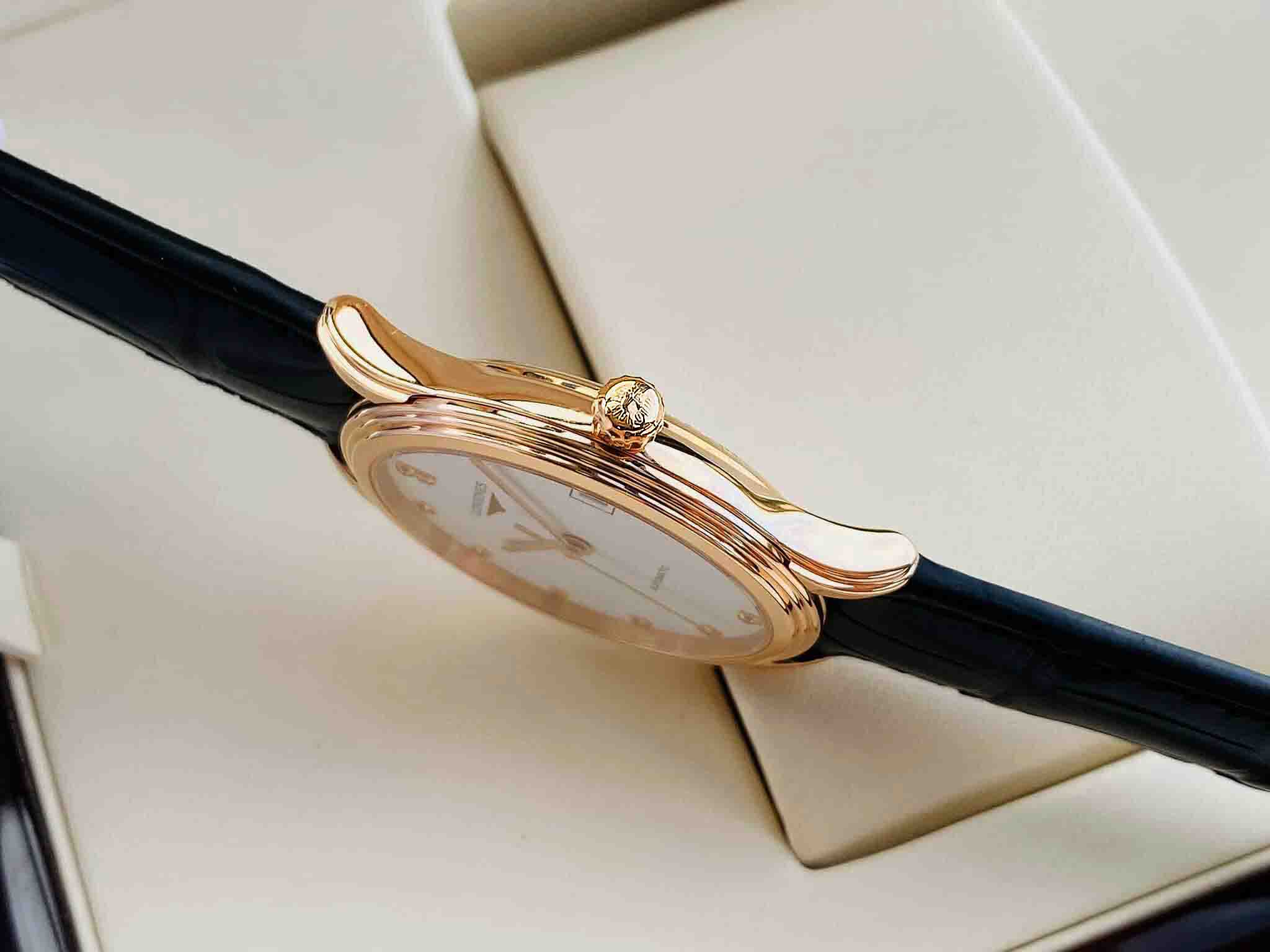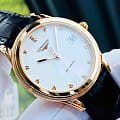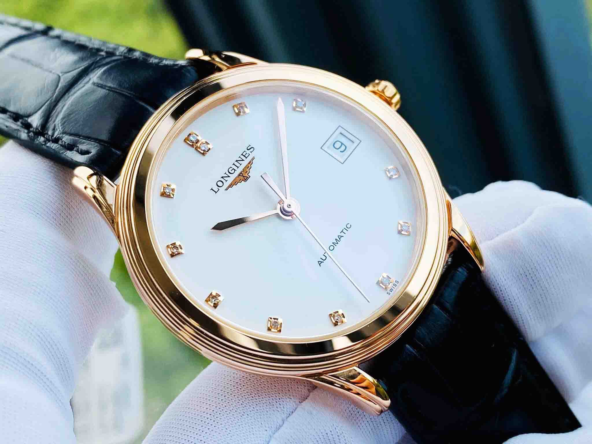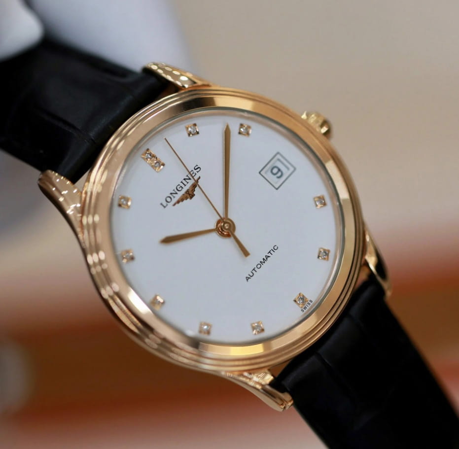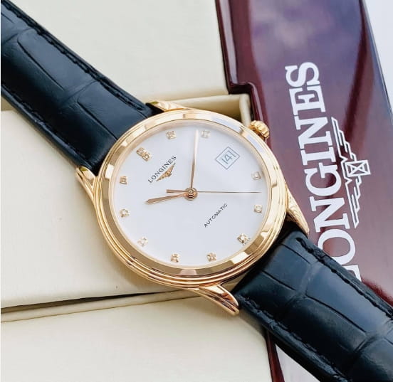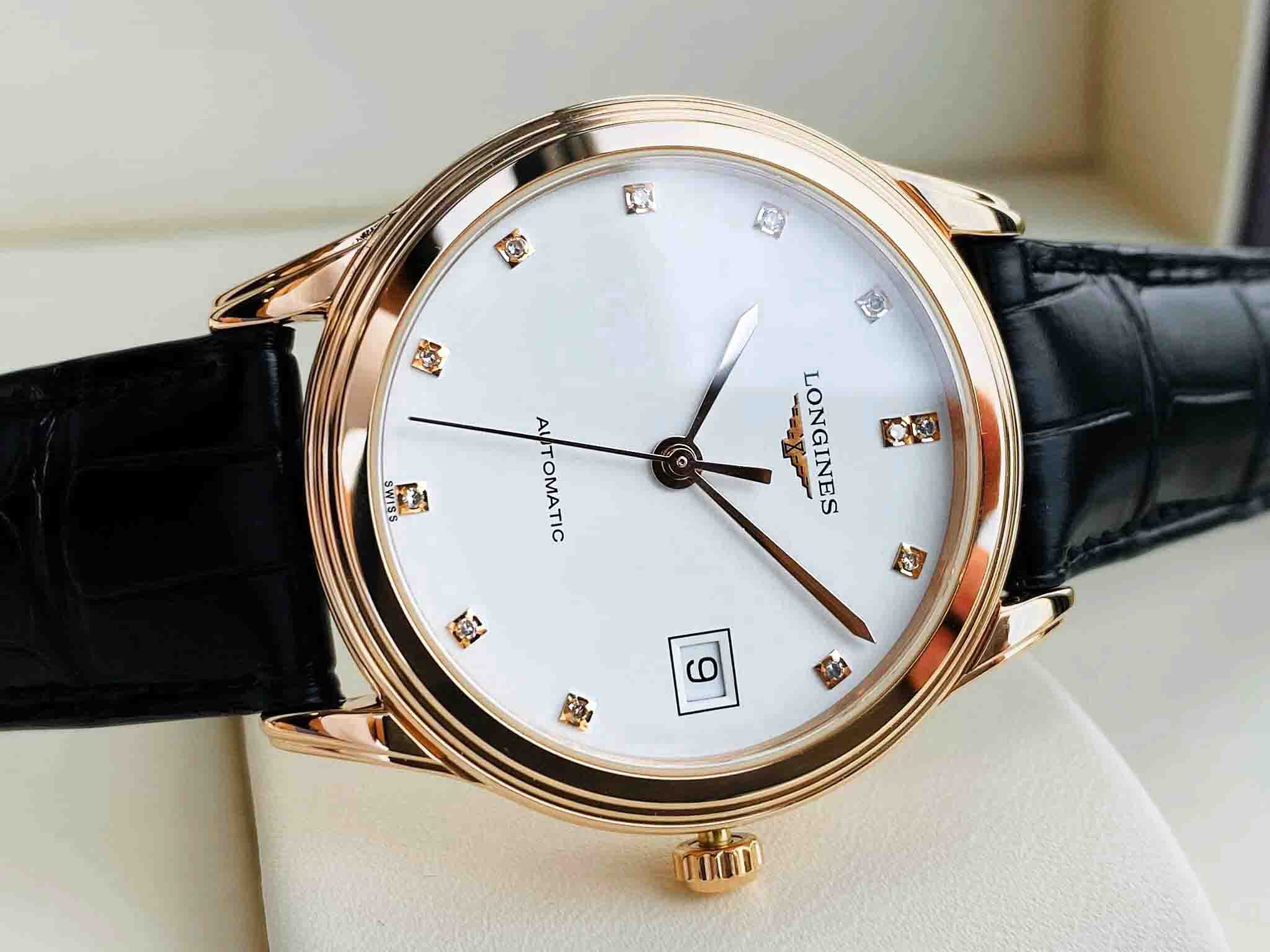 Мужские швейцарские механические часы Longines Flagship L4.774.8.27.2, механический механизм (автоматический калибр) с высокой точностью. Сапфировое стеклоСапфировое стеклоПрочный и надёжный материал из кристалла сапфира синтетического происхождения, характеризующийся особой твёрдостью и устойчивостью к царапинам и повреждениям. устойчивое к появлению царапин, обладающее высокой прозрачностью. Класс водозащиты: 30 метров, позволит защитить корпус от случайных брызг или капель дождя. Корпус часов изготовлен из 18-каратного розового золота18-каратное золотоОбозначение по каратной системе пробирования, оно показывает, сколько драгоценного металла содержится в изделии. 18 карат - в составе 75% чистого золота, соответствует 750 пробе.