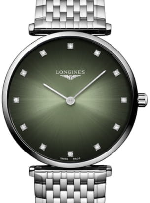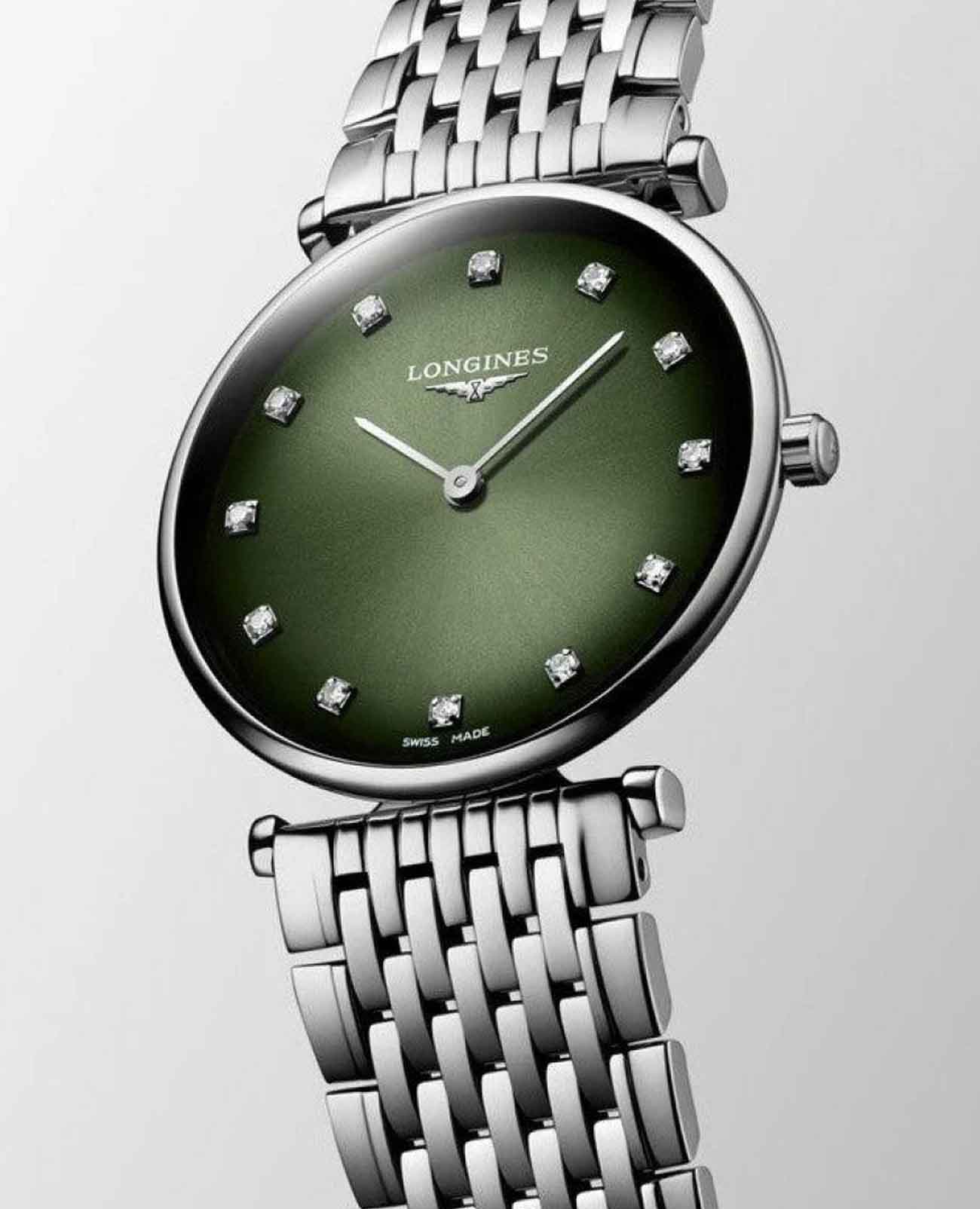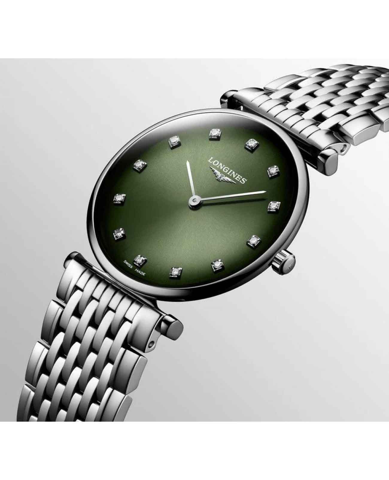 Женские швейцарские часы Longines La Grande Classique L4.866.4.92.6, кварцевый механизм с высокой точностью. Сапфировое стеклоСапфировое стеклоПрочный и надёжный материал из кристалла сапфира синтетического происхождения, характеризующийся особой твёрдостью и устойчивостью к царапинам и повреждениям. устойчивое к появлению царапин, обладающее высокой прозрачностью. Корпус часов изготовлен из стали. Циферблат с 12 бриллиантами группы Top Wesselton VS-SI общим весом 0.081 карата. Класс водозащиты: 30 метров, позволит защитить корпус от случайных брызг или капель дождя. Стальной браслет на застёжке-бабочке с кнопкамиЗастёжка "бабочка"Такой вид застёжки дополняется предохранителями, помогающими избежать случайного раскрытия браслета. Обладают изящным исполнением. .