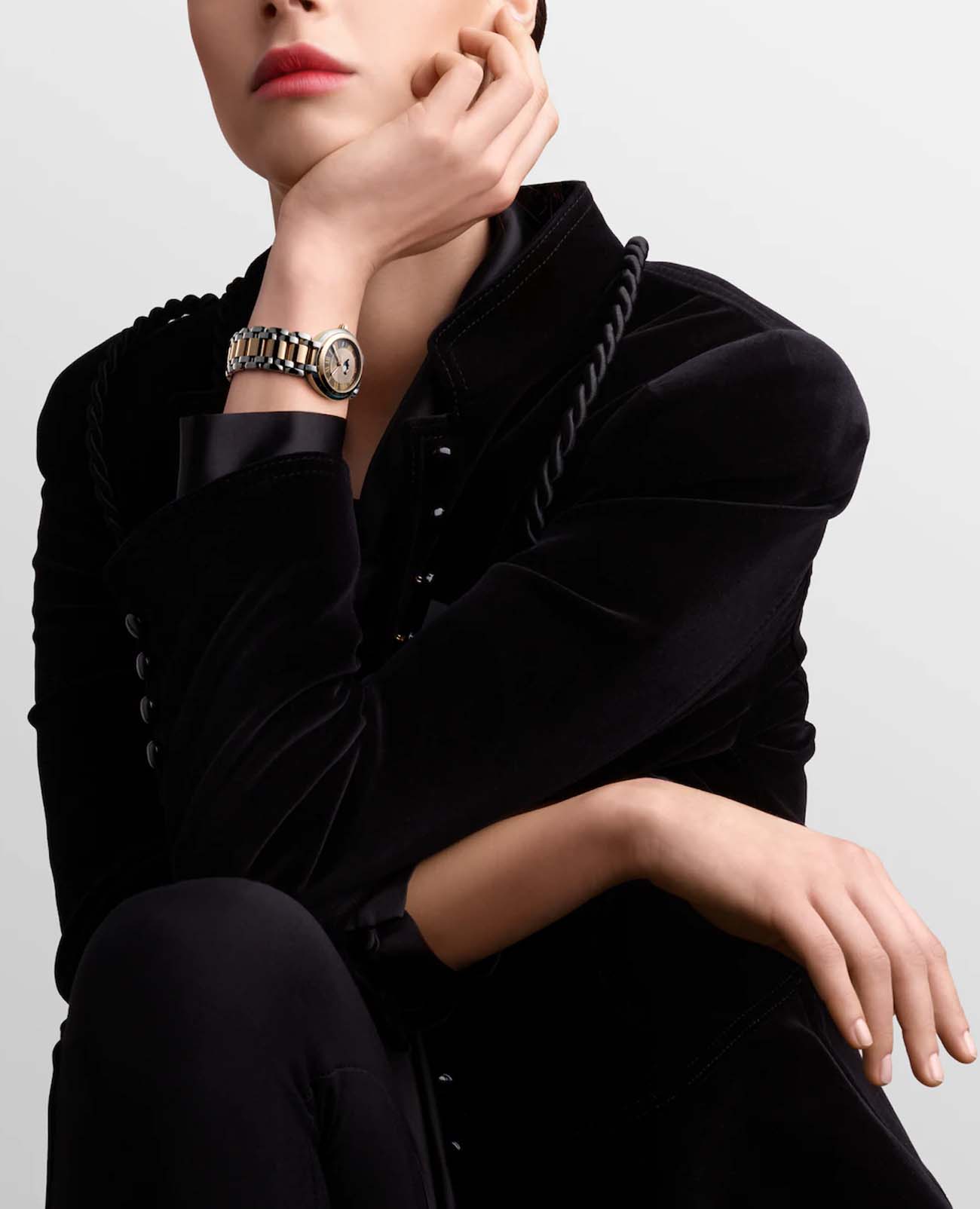 . Окошко даты в положении 3 часов. Указатель фазы луны в положении 6 часов. Класс водозащиты: 30 метров, позволит защитить корпус от случайных брызг или капель дождя. Стальной браслет с 18-каратным золотом18-каратное золотоОбозначение по каратной системе пробирования, оно показывает, сколько драгоценного металла содержится в изделии. 18 карат - в составе 75% чистого золота, соответствует 750 пробе.