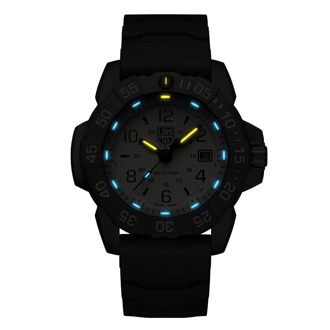 Luminox SEAL Foundation XS.3251.CBNSF.SET — это высококачественные швейцарские часы, созданные для тех, кто ценит надежность и стиль в повседневной жизни. Эти спортивные часы оборудованы кварцевым механизмом, который обеспечивает точность и стабильность работы. Их корпус выполнен из прочной стали 316L с PVD-покрытиемPVDУльтратонкое покрытие наносится в технике вакуумного напыления, сочетает в себе нитрид титана особой прочности со слоем золота или оксида хрома. Несёт в себе декоративную или защитную функцию., что придаёт часам современный и технологичный вид. Черный циферблат, на котором нанесены метки в виде штрихов и арабских цифр, защищен сапфировым стекломСапфировое стеклоПрочный и надёжный материал из кристалла сапфира синтетического происхождения, характеризующийся особой твёрдостью и устойчивостью к царапинам и повреждениям. с антибликовым покрытиемАнтибликовое покрытиеСлой оксида металла в 0,13-0,3 микрон, благодаря которому стекло часов не бликует и не отражает свет. Антибликовое покрытие уменьшает отражение света в 10 раз, обеспечивая отличную читаемость показателей циферблата., что позволяет без труда считывать время даже при ярком солнечном свете. Технология LLTLLTLLT — это автономный механизм подсветки, основанный на использовании микроскопических газонаполненных элементов. Специальные герметичные капсулы из боросиликатного стекла, интегрированные в циферблат, генерируют свечение без необходимости подключения к внешним источникам энергии. Для их работы не требуется ни дополнительный свет, ни механическое воздействие (например, нажатие кнопки). Свечение возникает благодаря химическому процессу: реакция между тритием, заключенным в капсулах, и люминофорным покрытием создает стабильное автономное освещение. Технология обеспечивает энергетическую независимость и долговечность подсветки.-подсветки обеспечивает отличную видимость в темноте, сохраняя свою эффективность на протяжении 25 лет. Окошко даты удобно расположено в позиции 3 часов. Часы оснащены вращающимся в одном направлении безелемБезельВнешний ободок, закрепляющий стекло. В спортивных часах так называется поворотное кольцо с делениями на циферблате, выполняет роль таймера – замеряет отрезки времени на шкале. Неподвижный безель – элемент декора. Однонаправленно вращающийся безель на дайверских часах позволяет фиксировать моменты погружения и выныривания на поверхность. со светящейся меткой на 12 часов, что добавляет функциональности и удобства. Завинчивающаяся заводная головка с защитой и завинчивающаяся задняя крышка с гравировкой обеспечивают дополнительную герметичность и стильный внешний вид. Резиновый черный ремешок с классической застежкой обеспечивает комфортное ношение и надежность фиксации на запястье, также в комплекте идет дополнительный бежевый нейлоновый ремешок. Эти часы обладают водозащитой до 200 метров, что делает их отличным выбором для активного отдыха и водных видов спорта.