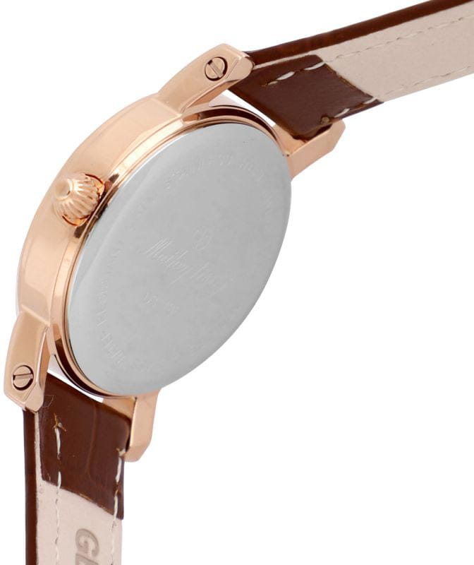 Женские кварцевые часы Mathey-Tissot City Leather D31186PBR— это стильное сочетание элегантности и современного дизайна. Изящный корпус выполнен из нержавеющей стали 316L с PVD-покрытиемPVDУльтратонкое покрытие наносится в технике вакуумного напыления, сочетает в себе нитрид титана особой прочности со слоем золота или оксида хрома. Несёт в себе декоративную или защитную функцию., что придаст образу женственности и романтизма. Изысканный циферблат с метками в виде римских цифр придает модели особый блеск. Циферблат защищен минеральным стекломМинеральное стеклоМинеральное стекло представляет собой искусственно выращенный минерал кварца. Такое стекло отличается особой устойчивостью к повреждениям и царапинам. Уступает по некоторым качествам сапфировому стеклу. с сапфировым покрытием, обеспечивающий устойчивость к царапинам. Окошко даты находится в положении 3 часа. Часы оснащены надежным кварцевым механизмом. Кожаный ремень на стандартной застежке, гарантирует комфортное и безопасное ношение. Класс водозащиты: 50 метров позволит защитить корпус от случайных брызг или капель дождя. Mathey-Tissot — отличный выбор для тех, кто ценит утонченность и качество.