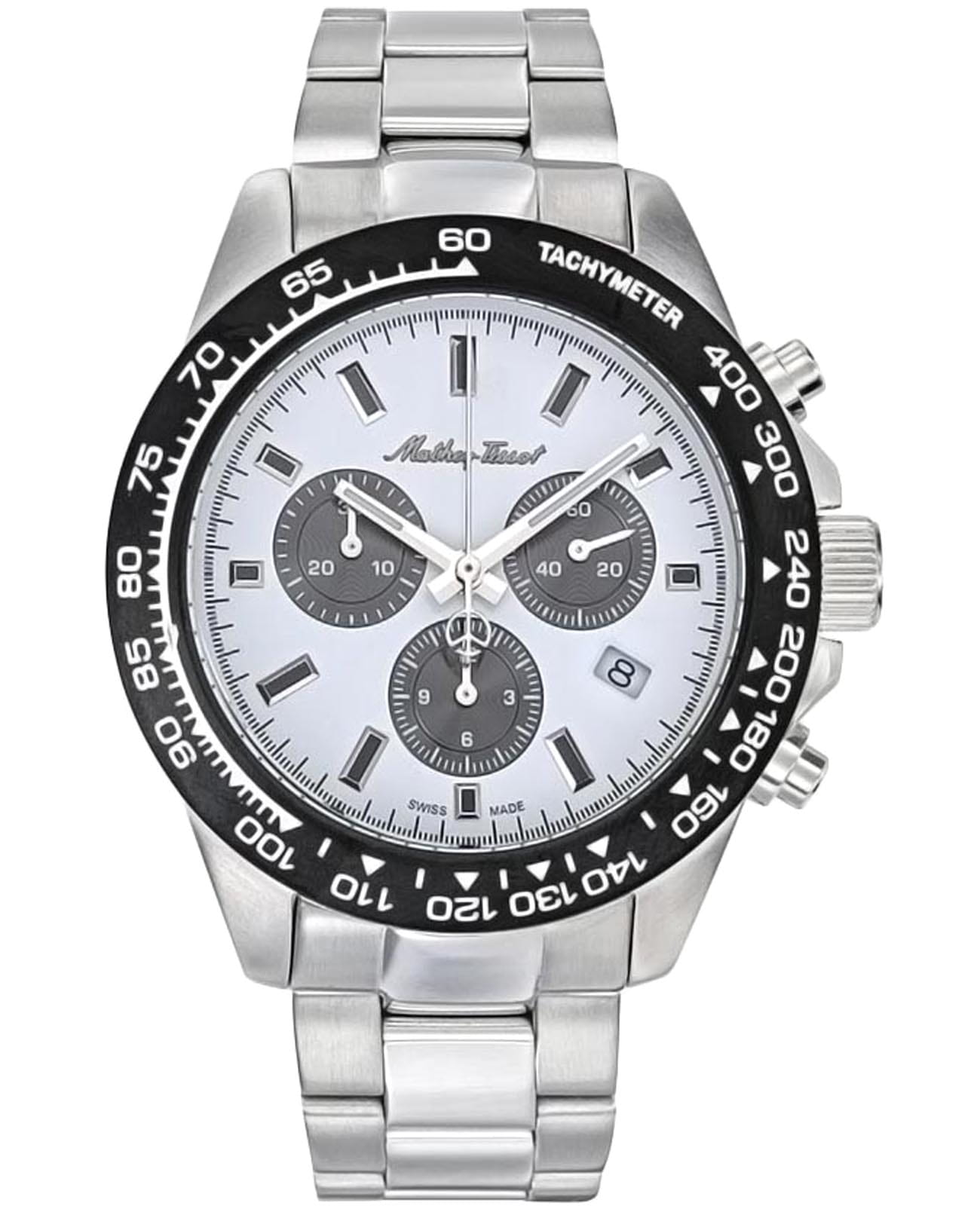 Мужские кварцевые часы-хронографХронографФункция позволяет измерять отрезки времени с особой точностью: часы, минуты, секунды. Верным признаком хронографа является наличие на циферблате 3 дополнительных окошек-счётчиков. Mathey-Tissot Mathy H9010CHAI — это стильное сочетание элегантности и современного дизайна. Изящный корпус выполнен из нержавеющей стали, диаметром 42 мм, что придаст образу элегантности и надежности. Изысканный циферблат с метками в виде штрихов придает модели особый блеск. Циферблат защищен минеральным стекломМинеральное стеклоМинеральное стекло представляет собой искусственно выращенный минерал кварца. Такое стекло отличается особой устойчивостью к повреждениям и царапинам. Уступает по некоторым качествам сапфировому стеклу. с сапфировым покрытием, обеспечивает устойчивость к царапинам. Стрелки и метки с люминесцентным покрытиемЛюминесцентное покрытиеПозволяет считывать показания времени в темноте. Производители наносят на стрелки, часовые индексы, безель или поверхность циферблата светонакопительный состав, дающий холодное свечение.. Шкала тахиметраТахиметрРазмеченная шкала, располагается на ободке или безеле часов. Тахиметр позволяет рассчитать скорость на определённом участке пути, расстояние измеряется в километрах или милях. на безелеБезельВнешний ободок, закрепляющий стекло. В спортивных часах так называется поворотное кольцо с делениями на циферблате, выполняет роль таймера – замеряет отрезки времени на шкале. Неподвижный безель – элемент декора. Однонаправленно вращающийся безель на дайверских часах позволяет фиксировать моменты погружения и выныривания на поверхность. с PVD-покрытиемPVDУльтратонкое покрытие наносится в технике вакуумного напыления, сочетает в себе нитрид титана особой прочности со слоем золота или оксида хрома. Несёт в себе декоративную или защитную функцию.. Окошко даты находится в положении 4 часа. Стальной браслет на раскладной застёжке с фиксаторомРаскладная застёжкаТакой тип застёжки используется только на браслетах из металла. Она никогда не раскрывается полностью, происходит разделение на 2 и более частей. Раскладывающая застёжка снизит вероятность потери часов к минимуму., гарантирует комфортное и безопасное ношение. Рифленая заводная головка. Класс водозащиты: 100 метров позволит плавать, нырять и заниматься другими водными видами спорта. Mathey-Tissot — отличный выбор для тех, кто ценит утонченность и качество.