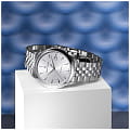 Швейцарские часы Maurice Lacroix 1975 751007-SS002-130-1 созданы для современных людей, ценящих стиль и качество. Эта модель, выпущенная в честь 50-летия бренда, сочетает в себе винтажный шарм и современную актуальность. Часы оснащены швейцарским кварцевым механизмом с высокой точностью хода. Корпус из нержавеющей стали диаметром 39 мм и толщиной 9 мм, с матовой и полированной отделкой, обеспечивает водозащиту до 100 метров. Серебристый циферблат с эффектом "солнечные лучи" украшен серебристыми индексами и стрелками, а также календарем с окошком даты на 6 часах. Сапфировое стеклоСапфировое стеклоПрочный и надёжный материал из кристалла сапфира синтетического происхождения, характеризующийся особой твёрдостью и устойчивостью к царапинам и повреждениям. с антибликовым покрытиемАнтибликовое покрытиеСлой оксида металла в 0,13-0,3 микрон, благодаря которому стекло часов не бликует и не отражает свет. Антибликовое покрытие уменьшает отражение света в 10 раз, обеспечивая отличную читаемость показателей циферблата. защищает циферблат. Часы комплектуются браслетом из нержавеющей стали, браслет из литых звеньев в пять рядов и системой быстрой смены ремешка. Застежка «бабочка»Застёжка "бабочка"Такой вид застёжки дополняется предохранителями, помогающими избежать случайного раскрытия браслета. Обладают изящным исполнением.