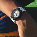 Новое специальное издание AIKON #tide FIBA3x3, наполненное энергией. Эти часы с баскетбольной тематикой, помещенные в 40-миллиметровый корпус, оснащены плоским сапфировым стеклом, улучшающим читаемость, а кварцевый механизм обеспечивает точность в мире, где секунды на счету. Эти две модели, идеально подходящие для придворных, выпускаются с черными или белыми циферблатами и поставляются на координирующих ремешках. На циферблатах нанесен логотип "3x3", выполненный в виде замысловатого мотива, а на задней крышке корпуса также выбит логотип ‘3x3’. Мужские швейцарские кварцевые часы Maurice Lacroix Aikon Tide Special Edition FIBA 3x3 AI2008-00YZ1-000-0. Сапфировое стеклоСапфировое стеклоПрочный и надёжный материал из кристалла сапфира синтетического происхождения, характеризующийся особой твёрдостью и устойчивостью к царапинам и повреждениям. устойчивое к появлению царапин, обладающее высокой прозрачностью. Белый циферблат. Стрелки и метки с люминесцентным покрытиемЛюминесцентное покрытиеПозволяет считывать показания времени в темноте. Производители наносят на стрелки, часовые индексы, безель или поверхность циферблата светонакопительный состав, дающий холодное свечение.. Класс водозащиты: 100 метров, позволит плавать, нырять и заниматься другими водными видами спорта. Окошко даты находится в положении 3 часов. Корпус выполнен из переработанного пластика, ранее загрязнявшего Мировой океан. Каучуковый ремешок с классической застежкой.