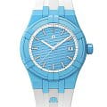 Часы AIKON #tide обладают всеми преимуществами AIKON, но кроме того, они выполнены из особого материала под названием #tideocean – переработанного океанского пластика, усиленного стекловолокном. В результате сложного технологического процесса переработки получен композитный материал, вдвое превосходящий по прочности обычный пластик. Износостойкость композита #tideocean в пять раз выше полиэтилентерефталата (ПЭТ). И еще немаловажный экологический фактор – в процессе превращения океанского пластика в материал #tideocean углеродные выбросы в атмосферу значительно снижаются, чем при обычном процессе выпуска первичного пластика. В новой модели безельБезельВнешний ободок, закрепляющий стекло. В спортивных часах так называется поворотное кольцо с делениями на циферблате, выполняет роль таймера – замеряет отрезки времени на шкале. Неподвижный безель – элемент декора. Однонаправленно вращающийся безель на дайверских часах позволяет фиксировать моменты погружения и выныривания на поверхность., корпус, задняя крышка, заводная головка, наконечник и застежка выполнены из композитного материала #tideocean. 17 пластиковых бутылок требуется для производства одних отличных часов и их специальной упаковки, также на 100% состоящей из материала #tide, появившегося в результате отходов пластика в океане. В результате такой переработки выигрывают все. Унисекс швейцарские кварцевые часы Maurice Lacroix Aikon Quartz AI2008-AAAA1-3A0-0. Сапфировое стеклоСапфировое стеклоПрочный и надёжный материал из кристалла сапфира синтетического происхождения, характеризующийся особой твёрдостью и устойчивостью к царапинам и повреждениям. устойчивое к появлению царапин, обладающее высокой прозрачностью. Голубой циферблат. Стрелки и метки с люминесцентным покрытиемЛюминесцентное покрытиеПозволяет считывать показания времени в темноте. Производители наносят на стрелки, часовые индексы, безель или поверхность циферблата светонакопительный состав, дающий холодное свечение.. Класс водозащиты: 100 метров, позволит плавать, нырять и заниматься другими водными видами спорта. Окошко даты находится в положении 3 часов. Циферблат с тематическим гильошированием "Vagues du Jura". Корпус выполнен из переработанного пластика, ранее загрязнявшего Мировой океан. Каучуковый ремешок с классической застежкой.