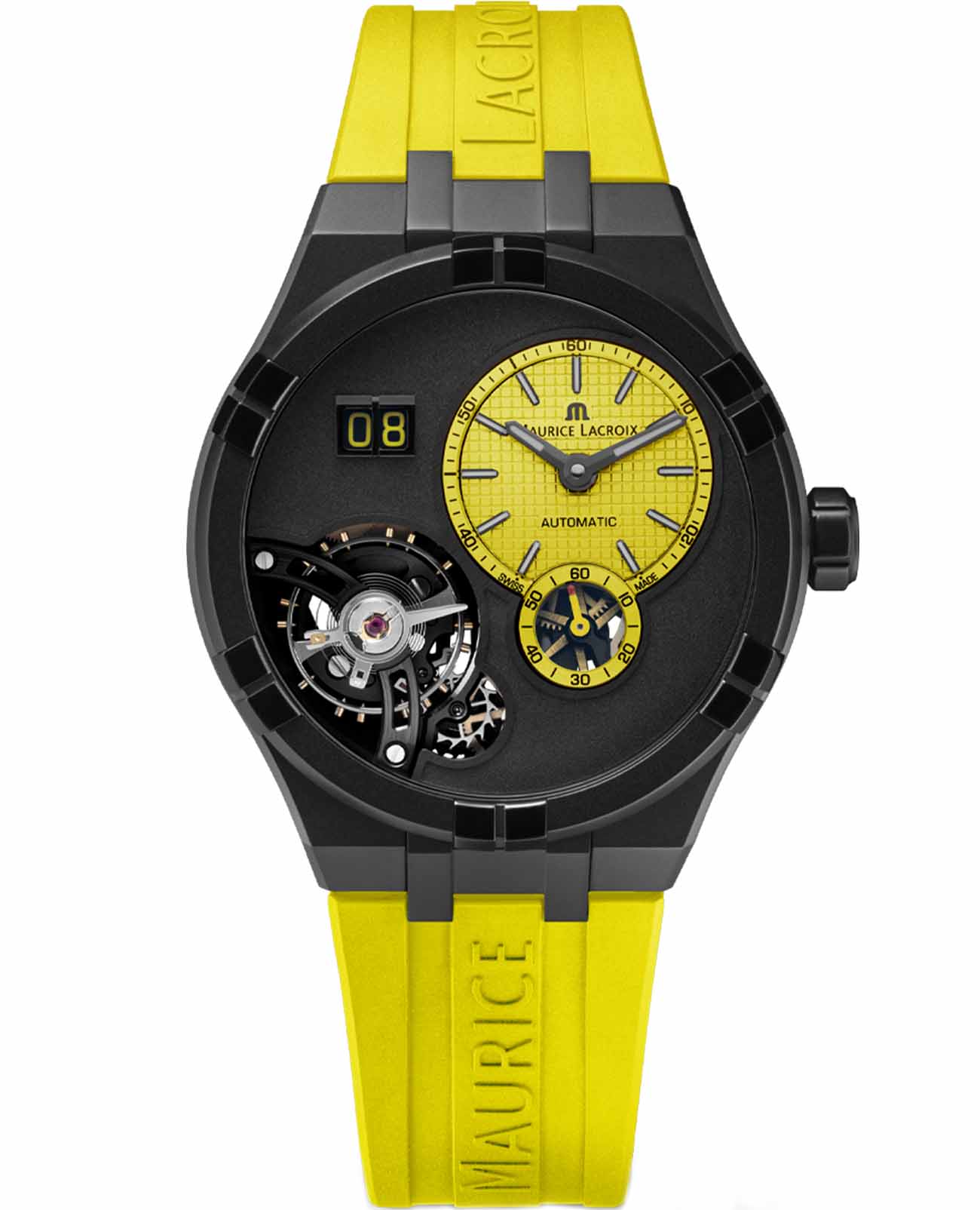 Швейцарские часы Maurice Lacroix Aikon Master Grand Date AI6118-DLB0J-730-I — это воплощение высоких стандартов часового искусства и современного стиля. В основе этого изысканного аксессуара лежит надежный механический механизм с автоподзаводом, калибр ML331, который обеспечивает точность и долговечность. Часы обладают запасом хода в 50 часов, а частота их работы составляет 18 000 полуколебаний в час. Корпус изготовлен из стали с высокотехнологичным DLC-покрытиемDLC-покрытиеDiamond like carbon - одно из лучших видов покрытия, представляющее собой углерод с алмазными свойствами. На поверхность материала наносятся распавшиеся молекулы углерода, превращающиеся в плёнку из алмазоподобных связей, которая перенимает твёрдость алмаза., придающим дополнительную прочность и стойкость к износу. Черно-желтый циферблат выделяется благодаря эффектному дизайну со смещенным центром, а также прозрачному окошку, через которое можно наблюдать за работой механизма. БезельБезельВнешний ободок, закрепляющий стекло. В спортивных часах так называется поворотное кольцо с делениями на циферблате, выполняет роль таймера – замеряет отрезки времени на шкале. Неподвижный безель – элемент декора. Однонаправленно вращающийся безель на дайверских часах позволяет фиксировать моменты погружения и выныривания на поверхность. привлекает внимание своим оригинальным дизайном из шести «когтей». Водозащита на уровне 100WR позволяет использовать часы в различных условиях, включая плавание. Стрелки и метки с люминесцентным покрытиемЛюминесцентное покрытиеПозволяет считывать показания времени в темноте. Производители наносят на стрелки, часовые индексы, безель или поверхность циферблата светонакопительный состав, дающий холодное свечение., что облегчает чтение времени даже в условиях слабого освещения. Сапфировое стеклоСапфировое стеклоПрочный и надёжный материал из кристалла сапфира синтетического происхождения, характеризующийся особой твёрдостью и устойчивостью к царапинам и повреждениям. с двойным антибликовым покрытиемАнтибликовое покрытиеСлой оксида металла в 0,13-0,3 микрон, благодаря которому стекло часов не бликует и не отражает свет. Антибликовое покрытие уменьшает отражение света в 10 раз, обеспечивая отличную читаемость показателей циферблата. защищает циферблат от царапин и бликов, а прозрачная задняя крышка из сапфирового стекла крепится на 7 винтах, позволяя наслаждаться видом внутреннего механизма. Часы также оснащены функцией большого календаря, расположенного на отметке 10 часов, и завинчивающейся заводной головкой, что добавляет надежности конструкции. Каучуковый ремешок с классической застежкой и системой быстрой замены обеспечивает комфорт и стильный внешний вид. В комплекте идет дополнительный сменный ремешок, что расширяет возможности для персонализации.