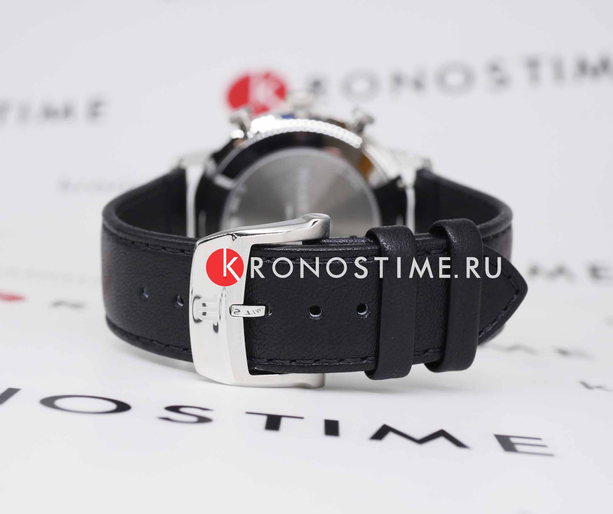 Швейцарский кварцевый хронограф Maurice Lacroix EL1098-SS001-110-2 из коллекции Eliros Chronograph — это стильный и функциональный аксессуар, сочетающий в себе сбалансированный дизайн и высокое качество исполнения. Модель оснащена точным кварцевым механизмом и хронографомХронографФункция позволяет измерять отрезки времени с особой точностью: часы, минуты, секунды. Верным признаком хронографа является наличие на циферблате 3 дополнительных окошек-счётчиков. с возможностью измерения времени до 30 минут с точностью 1/10 секунды. Секундная стрелка вынесена на отдельный циферблат в положении 3 часов, что делает показания визуально чёткими и удобными для восприятия. Циферблат белого цвета выполнен с лакированной поверхностью и дополнен штриховыми метками и римскими цифрами, что придаёт модели классическую элегантность. Защиту циферблата обеспечивает сапфировое стеклоСапфировое стеклоПрочный и надёжный материал из кристалла сапфира синтетического происхождения, характеризующийся особой твёрдостью и устойчивостью к царапинам и повреждениям. с двойным антибликовым покрытиемАнтибликовое покрытиеСлой оксида металла в 0,13-0,3 микрон, благодаря которому стекло часов не бликует и не отражает свет. Антибликовое покрытие уменьшает отражение света в 10 раз, обеспечивая отличную читаемость показателей циферблата., устойчивое к царапинам и обеспечивающее отличную читаемость при ярком солнечном свете. Окошко даты размещено между отметками 4 и 5 часов, что делает его легко доступным для восприятия. Заводная головка имеет рифлёную форму, что упрощает настройку времени и добавляет модели спортивный акцент. Часы водонепроницаемы до 50 метров (), что позволяет использовать их в повседневных условиях — при мытье рук или под лёгким дождём. Часы установлены на кожаный ремешок с логотипом «M» на застёжке, дополненный классической раскладной застёжкойРаскладной замокДанный вариант застежки используется только на часах с металлическим браслетом. Отличительная особенность такого крепления в том, что длина браслета становится универсальной и вы можете самостоятельно отрегулировать нужный вам размер – застежка просто двигается по браслету часов. для удобного и надёжного крепления на запястье. Ширина ремешка составляет 20 мм, а общий диаметр корпуса — 40 мм, что делает модель универсальной и комфортной при ношении. Maurice Lacroix уделяет внимание не только точности и дизайну, но и заботе об окружающей среде — упаковка часов изготовлена из переработанного океанического пластика. Эти часы станут идеальным выбором для тех, кто ценит сочетание стиля, технологичности и ответственности перед природой — универсальный аксессуар для повседневной носки и торжественных случаев.