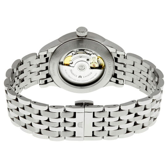 Механические часы Maurice Lacroix Les Classiques LC6027-SS002-111-1 с автоматическим механизмом с высокой точностью. Сапфировое стеклоСапфировое стеклоПрочный и надёжный материал из кристалла сапфира синтетического происхождения, характеризующийся особой твёрдостью и устойчивостью к царапинам и повреждениям. устойчивое к появлению царапин, обладающее высокой прозрачностью. Стрелки с люминесцентным покрытиемЛюминесцентное покрытиеПозволяет считывать показания времени в темноте. Производители наносят на стрелки, часовые индексы, безель или поверхность циферблата светонакопительный состав, дающий холодное свечение.. Класс водозащиты: 30 метров, позволит защитить корпус от случайных брызг или капель дождя. Корпус часов изготовлен из нержавеющей стали. Металлический браслет с застёжкой «бабочка» с кнопкамиЗастёжка "бабочка"Такой вид застёжки дополняется предохранителями, помогающими избежать случайного раскрытия браслета. Обладают изящным исполнением. .