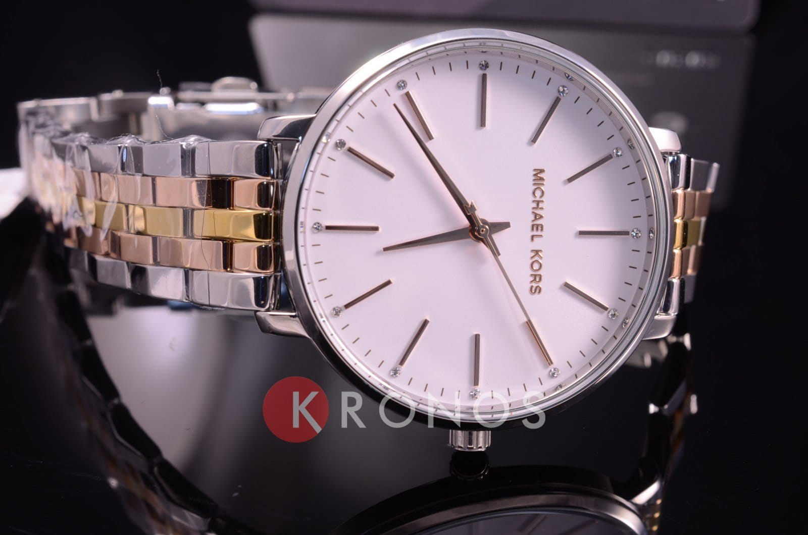 Часы Michael Kors являются атрибутом роскошного образа жизни, гармонично сочетая в себе практичность и невероятный модный дизайн. Несмотря на то, что аксессуар является представителем стиля fashion, дизайнеры не забыли о классических элементах оформления. Это привело к сохранению актуальности на множество сезонов вперёд. Брендовый аксессуар идеально дополнит ваш образ, он может как подчеркнуть ваши индивидуальные черты, так и наделить офисный костюм нотками оригинальности. Наручные часы комплектуются японскими механизмами, отличающиеся надёжностью и высокой точностью хода. Для защиты циферблата используется минеральное стекло, устойчивое к образованию царапин.