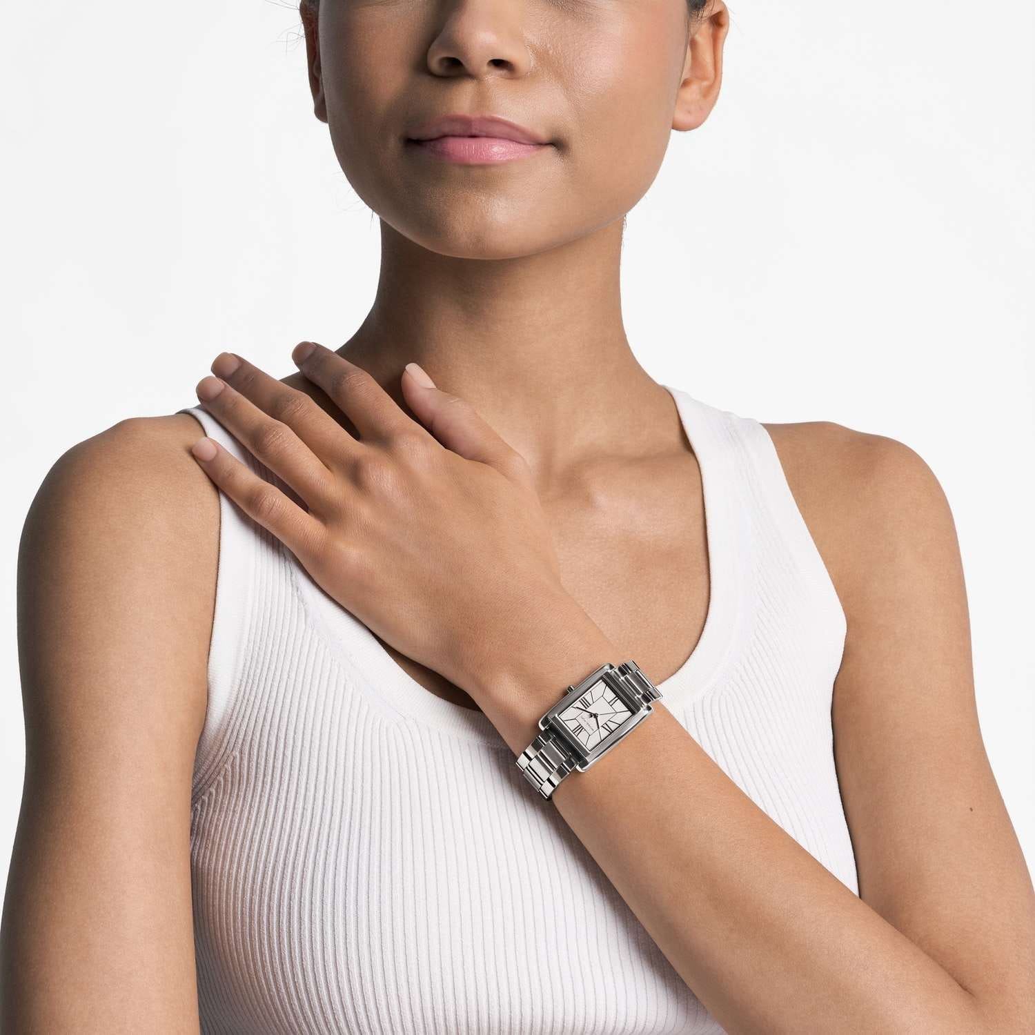 Женские американские часы Michael Kors ESSEX MK4906 имеют кварцевый механизм с высокой точностью. Корпус часов изготовлен из нержавеющей стали серебристого цвета, размером 26 мм. Циферблат с метками в виде римских цифр защищен минеральным стекломМинеральное стеклоМинеральное стекло представляет собой искусственно выращенный минерал кварца. Такое стекло отличается особой устойчивостью к повреждениям и царапинам. Уступает по некоторым качествам сапфировому стеклу., что обеспечивает надежную защиту от царапин и повреждений. Класс водозащиты: 50 метров позволит защитить корпус от случайных брызг или капель дождя. Стальной браслет на раскладной застёжкеРаскладная застёжкаТакой тип застёжки используется только на браслетах из металла. Она никогда не раскрывается полностью, происходит разделение на 2 и более частей. Раскладывающая застёжка снизит вероятность потери часов к минимуму. обеспечивает надежную фиксацию на запястье и легкость в надевании и снятии. Эти часы станут отличным дополнением к любому наряду, подчеркивая индивидуальность и стиль их обладательницы. Идеальный аксессуар, который придаст женскому образу завершенность и особый шарм.