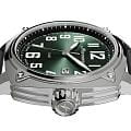 Мужские механические часы с автоподзаводом — это надёжный аксессуар от легендарного бренда «МОЛНИЯ», созданный на Челябинском часовом заводе. Корпус диаметром 42 мм выполнен из нержавеющей стали 316L с зеркальной полировкой. БезельБезельВнешний ободок, закрепляющий стекло. В спортивных часах так называется поворотное кольцо с делениями на циферблате, выполняет роль таймера – замеряет отрезки времени на шкале. Неподвижный безель – элемент декора. Однонаправленно вращающийся безель на дайверских часах позволяет фиксировать моменты погружения и выныривания на поверхность. также выполнен из стали с зеркальной отделкой. Циферблат зелёного цвета оформлен индексами и стрелками. Окошко даты расположено в положении 3 часов. Стрелки и метки с люминесцентным покрытиемЛюминесцентное покрытиеПозволяет считывать показания времени в темноте. Производители наносят на стрелки, часовые индексы, безель или поверхность циферблата светонакопительный состав, дающий холодное свечение. Super-LumiNova, обеспечивающим хорошую читаемость в темноте. Циферблат защищён сапфировым стекломСапфировое стеклоПрочный и надёжный материал из кристалла сапфира синтетического происхождения, характеризующийся особой твёрдостью и устойчивостью к царапинам и повреждениям. с антибликовым покрытиемАнтибликовое покрытиеСлой оксида металла в 0,13-0,3 микрон, благодаря которому стекло часов не бликует и не отражает свет. Антибликовое покрытие уменьшает отражение света в 10 раз, обеспечивая отличную читаемость показателей циферблата.. Механизм — японский автоматический калибр Miyota 8215 с функцией и запасом хода до 42 часов. Прозрачная задняя крышка позволяет наблюдать за работой механизма. Часы оснащены кожаным ремешком чёрного цвета с белой отстрочкой и классической пряжкой. Водонепроницаемость 100 м позволяет использовать часы для плавания и повседневного ношения. Идеальный выбор для тех, кто ценит качество, точность и стиль.