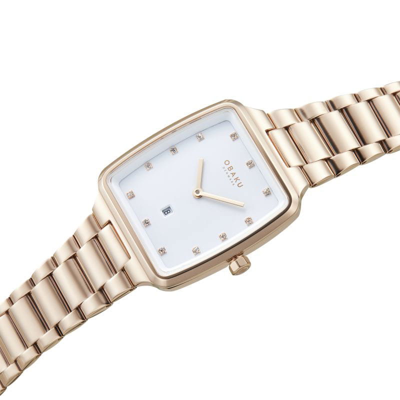 Женские датские наручные часы с минеральным стекломМинеральное стеклоМинеральное стекло представляет собой искусственно выращенный минерал кварца. Такое стекло отличается особой устойчивостью к повреждениям и царапинам. Уступает по некоторым качествам сапфировому стеклу. Obaku Links V271LDVWSV, кварцевый механизм с высокой точностью. Класс водозащиты: 30 метров, позволит защитить корпус от случайных брызг или капель дождя. Корпус часов изготовлен из стали  с IP-покрытиемIP-покрытиеМетод ионного напыления. Демонстрирует повышенную устойчивость к истиранию, окислению и химическим веществам. Под воздействием высокого давления и температуры около 1500°C молекулы металла надёжно соединяются с частицами корпуса часов.. Стальной браслет на раскладной застёжкеРаскладная застёжкаТакой тип застёжки используется только на браслетах из металла. Она никогда не раскрывается полностью, происходит разделение на 2 и более частей. Раскладывающая застёжка снизит вероятность потери часов к минимуму. с IP-покрытиемIP-покрытиеМетод ионного напыления. Демонстрирует повышенную устойчивость к истиранию, окислению и химическим веществам. Под воздействием высокого давления и температуры около 1500°C молекулы металла надёжно соединяются с частицами корпуса часов.. Циферблат инкрустирован кристаллами.